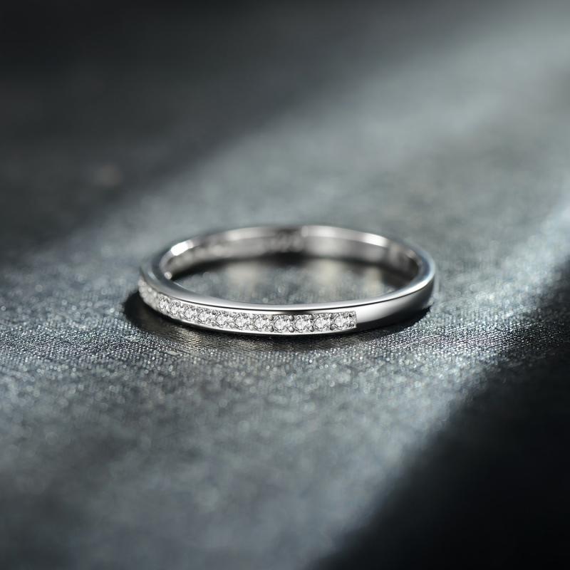 Elegant 925 sterling silver ring with high-quality synthetic zirconia stones, perfect for weddings and engagements.