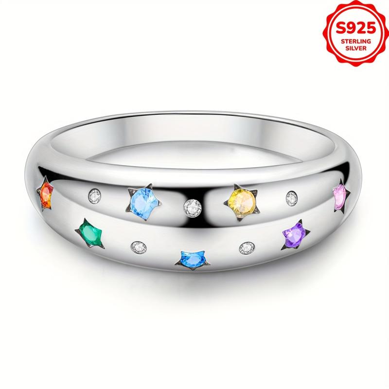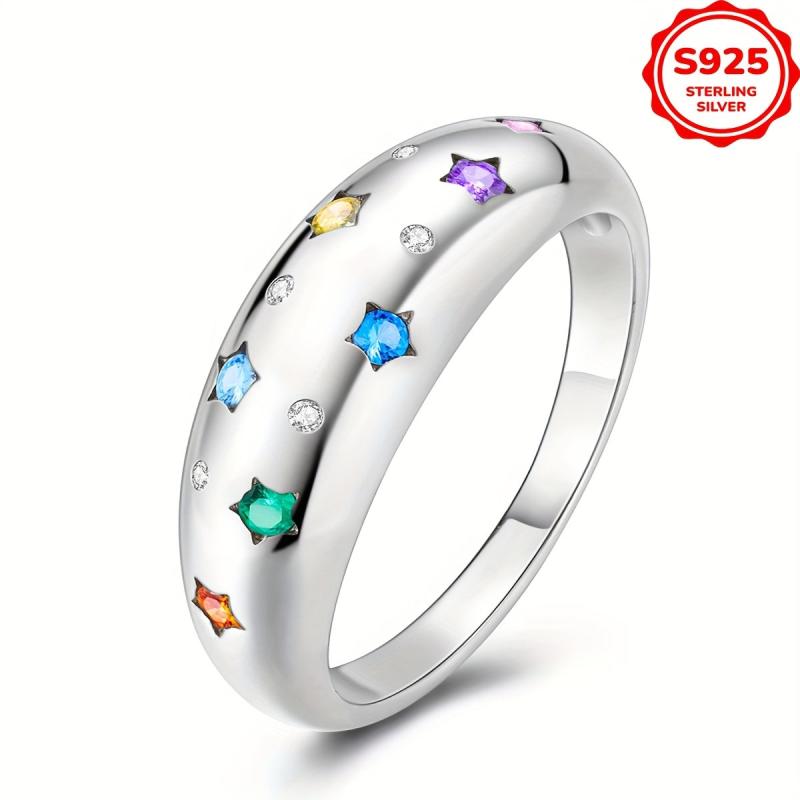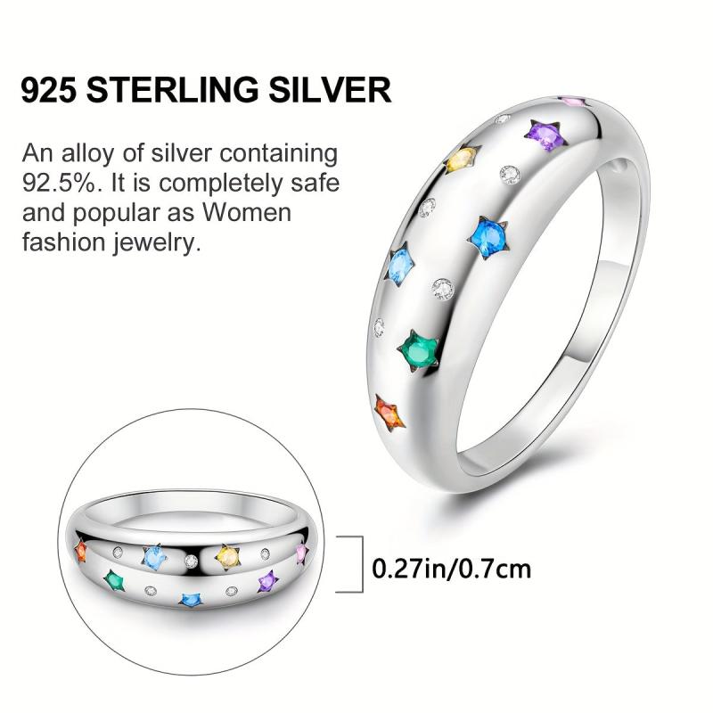 This stunning 925 sterling silver ring features a colorful star design, perfect for special occasions. Available in sizes 6, 7, 8, 9.