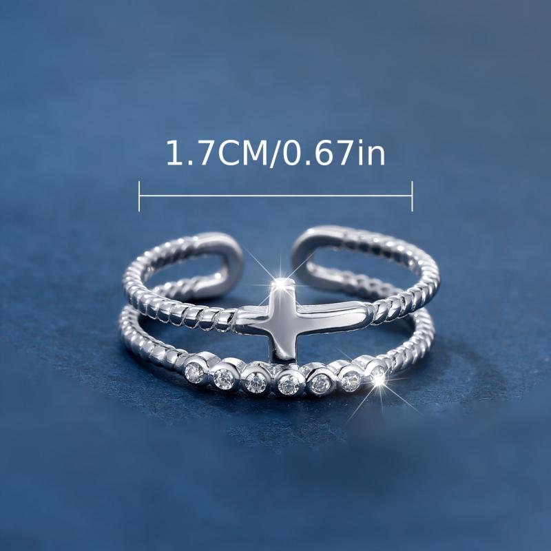 Elegant and stylish 925 sterling silver ring featuring a cross design with a double-layered open style.