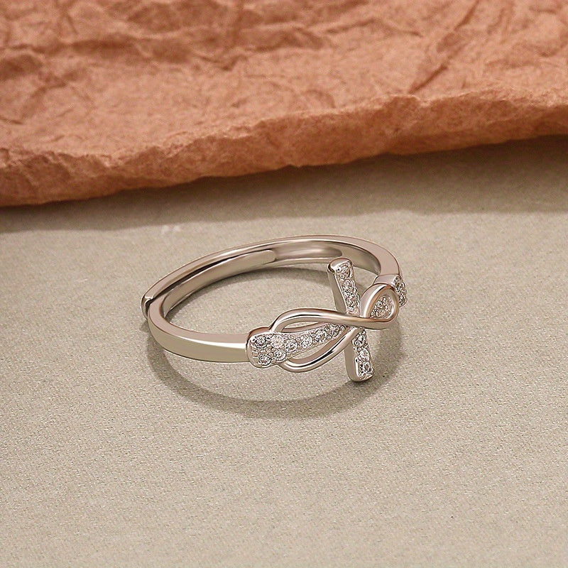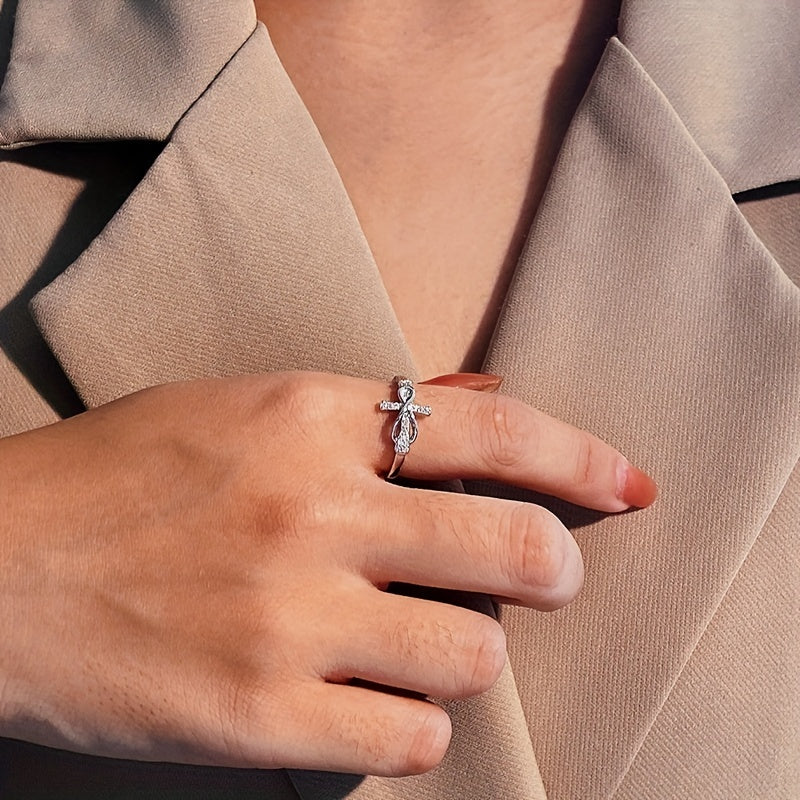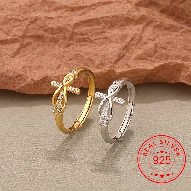 Add a touch of elegance to your outfit with this 925 sterling silver ring featuring a cross and infinity sign. Available in two classic colors to match your daily and party outfits.
