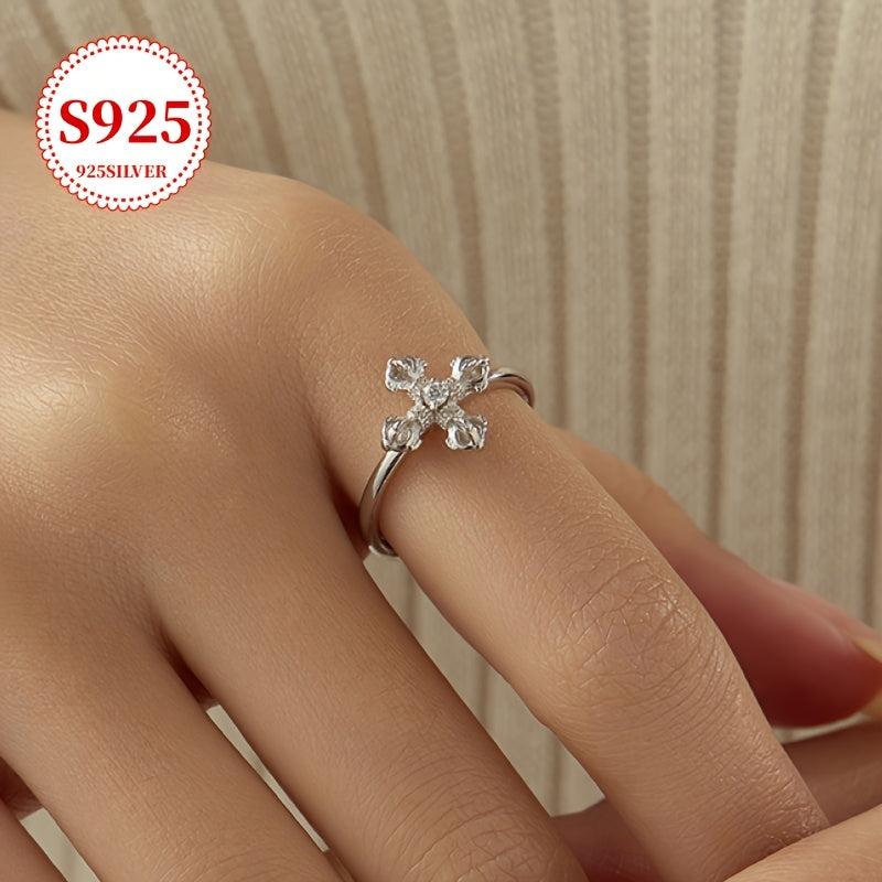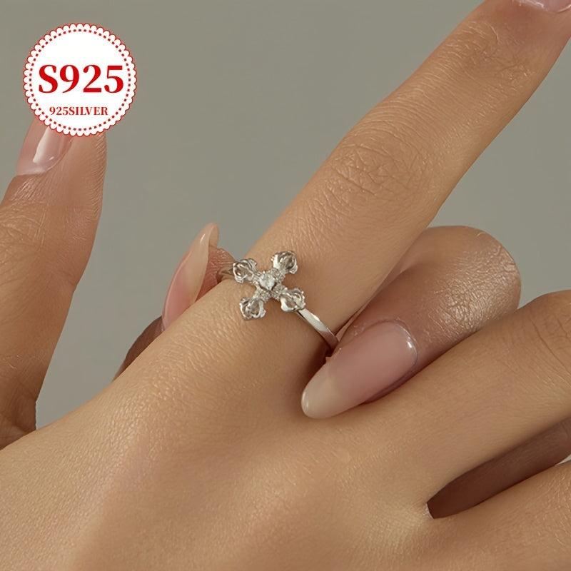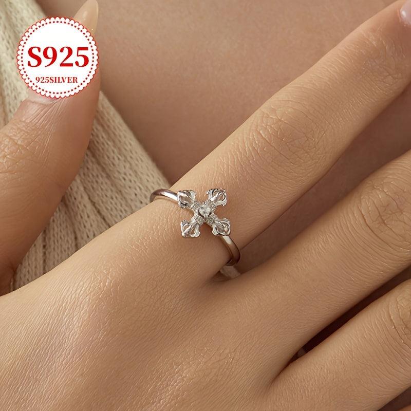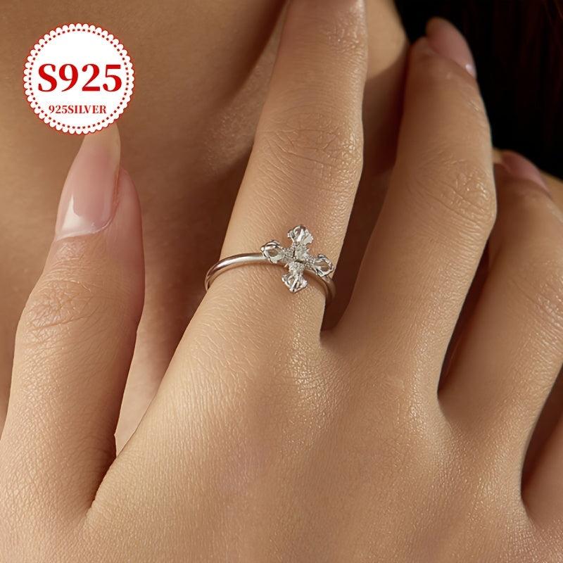 Add a touch of punk-inspired style to your look with this 925 silver cross ring featuring a sleek open band design and sparkling cubic zirconia accent. Perfect for adding an edgy flair to any outfit.