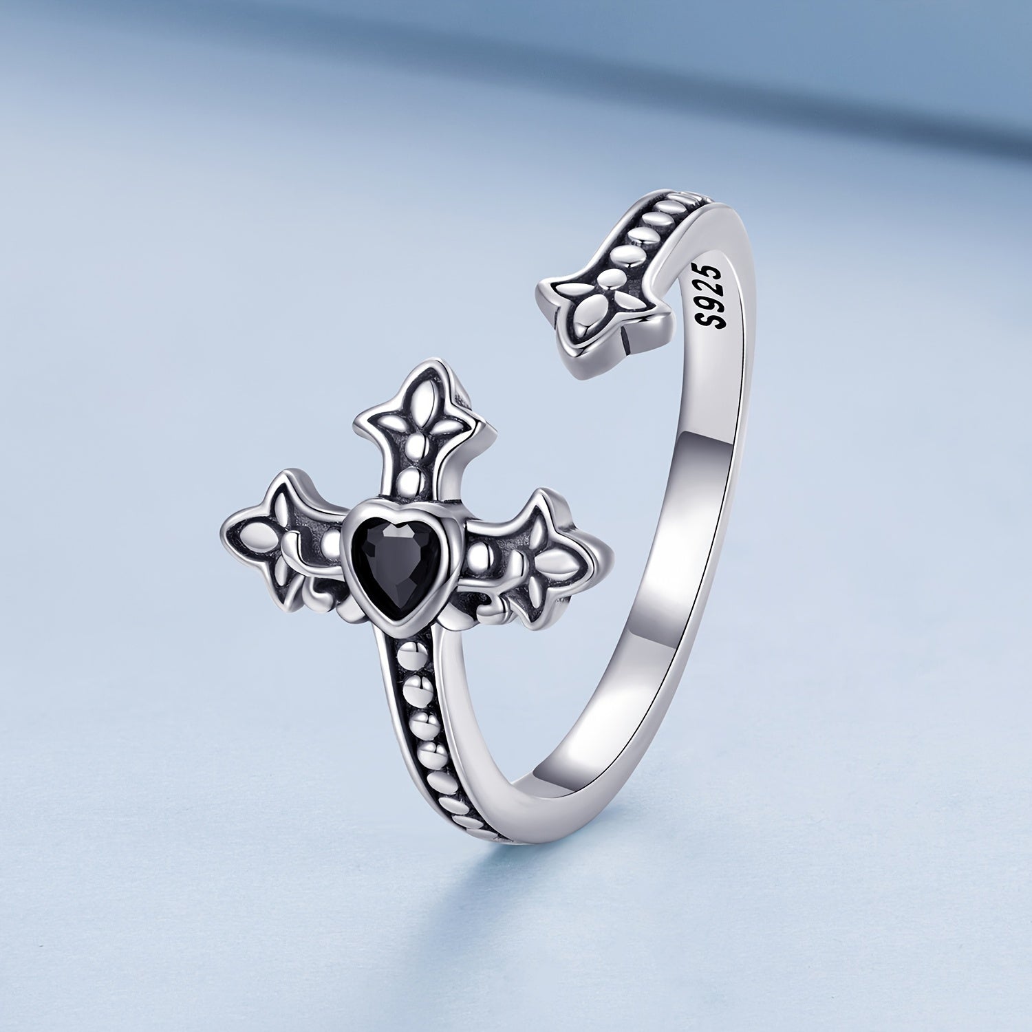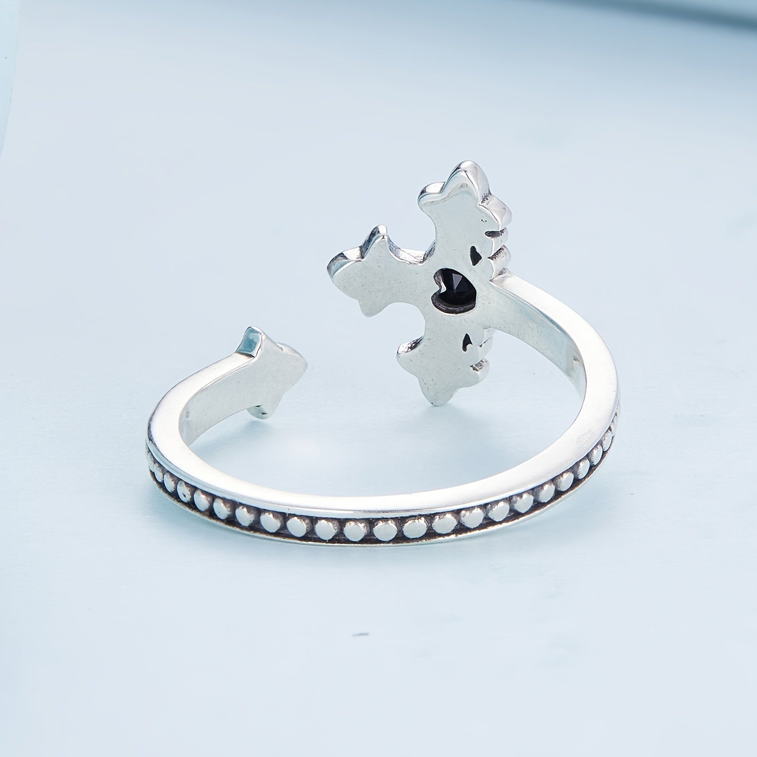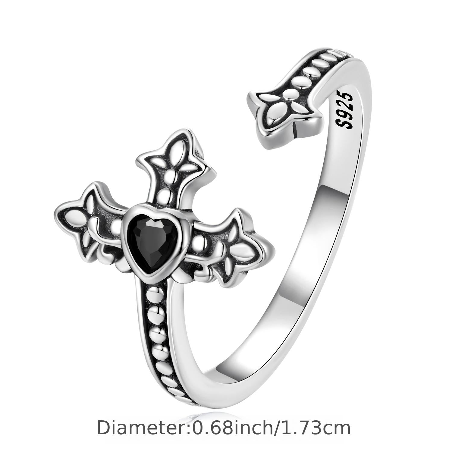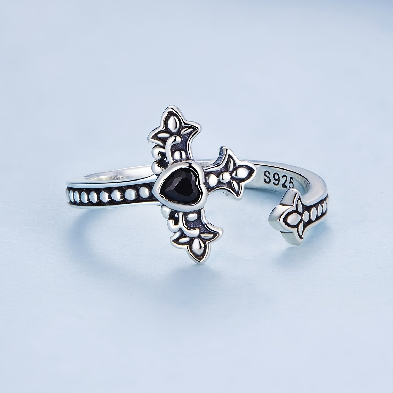 Add a touch of elegance to your look with this stunning 925 sterling silver open ring featuring an inlaid zircon cross design. Perfect for everyday wear or special occasions.