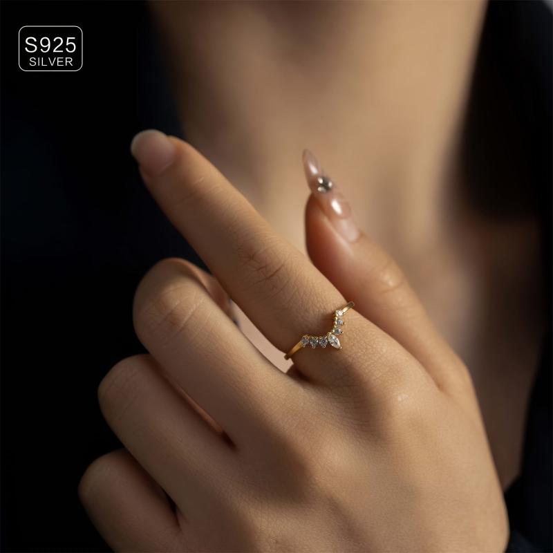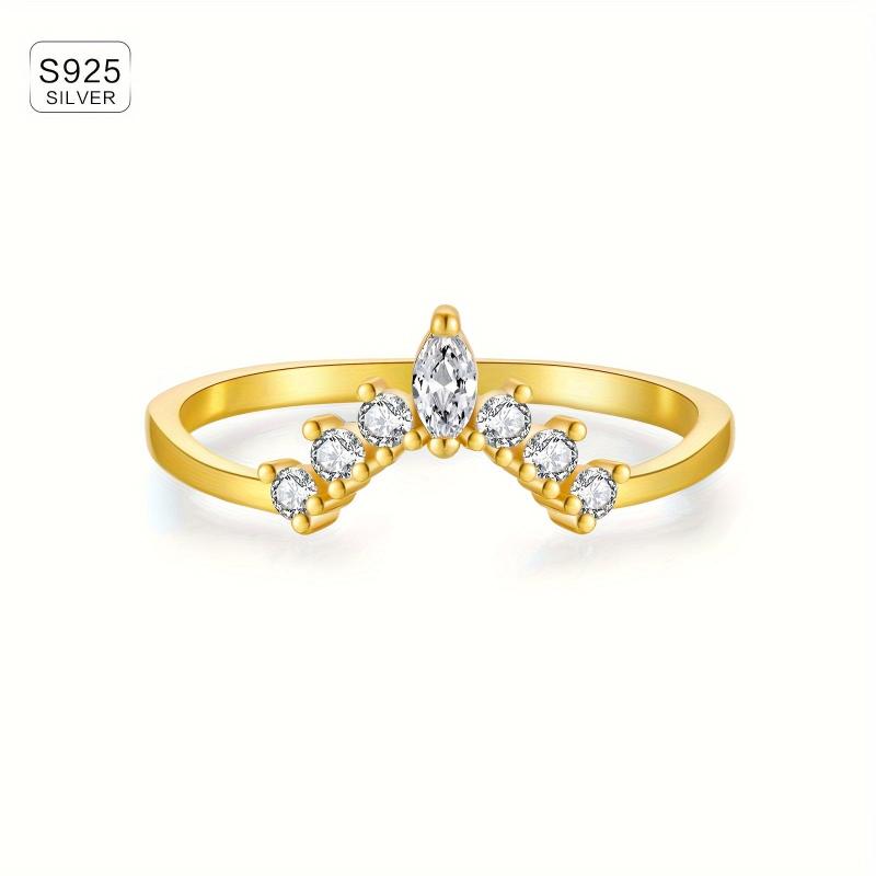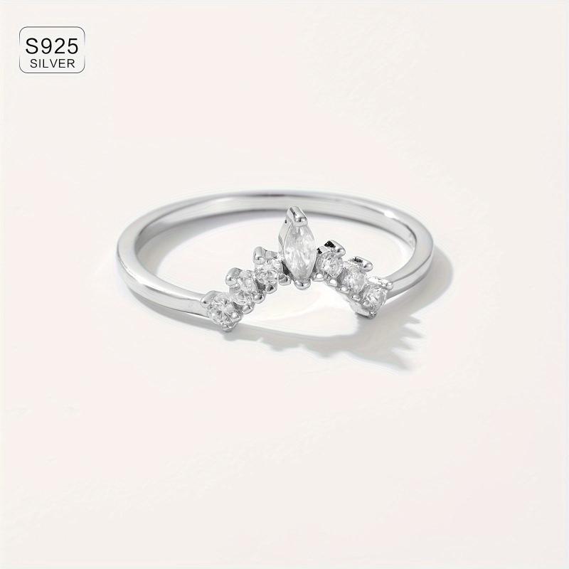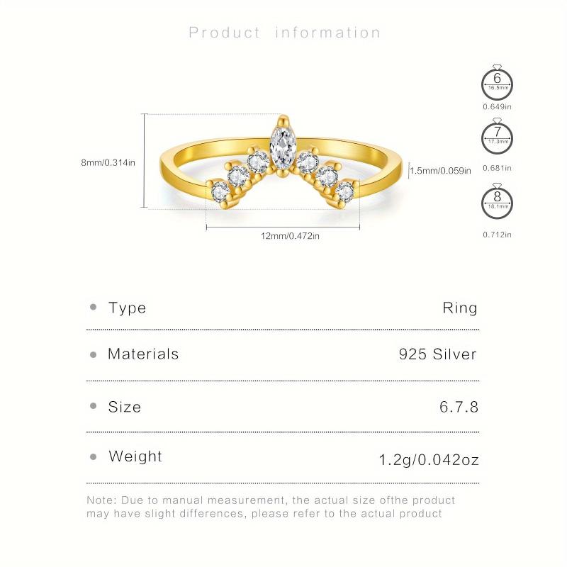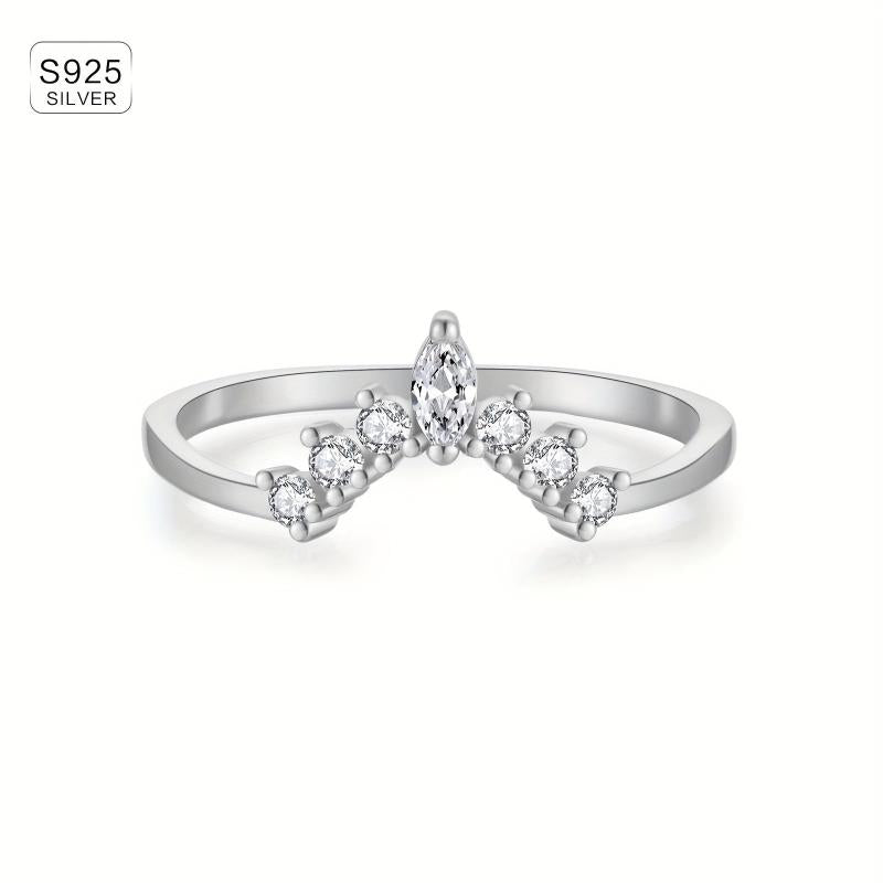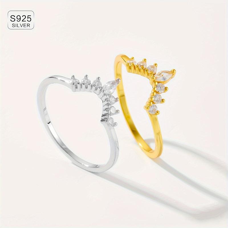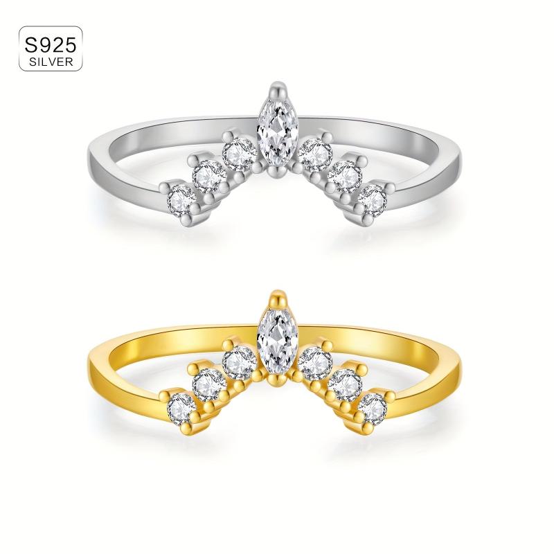 This women's ring set features a crown design with synthetic zirconia stones, perfect for all-season wear. Made of lightweight 925 silver plated material.
