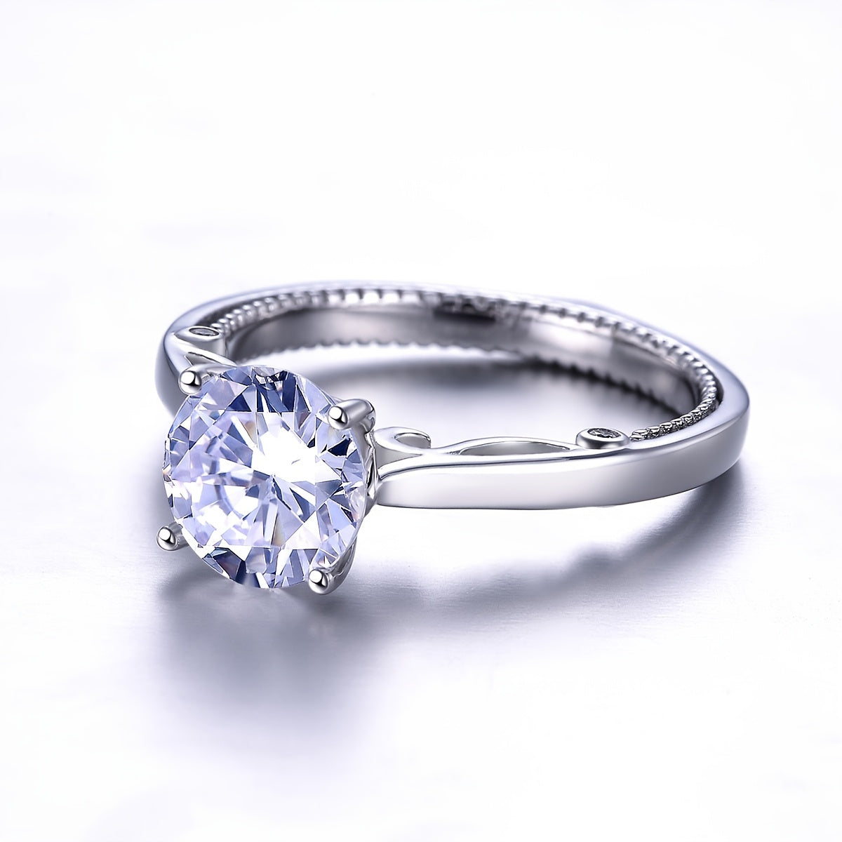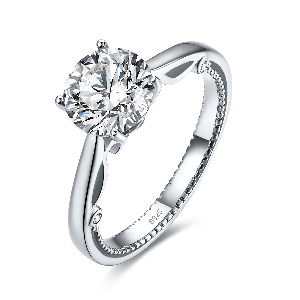 Elegant and timeless, this sterling silver solitaire ring features a sparkling cubic zirconia stone. Perfect gift for girls and women.