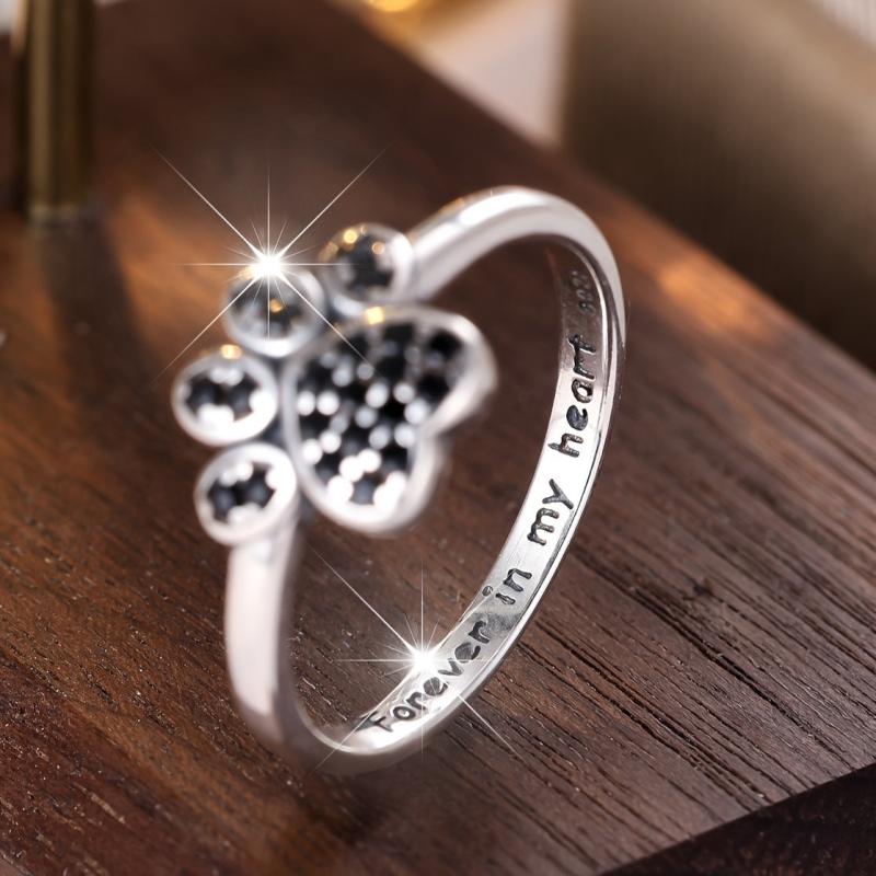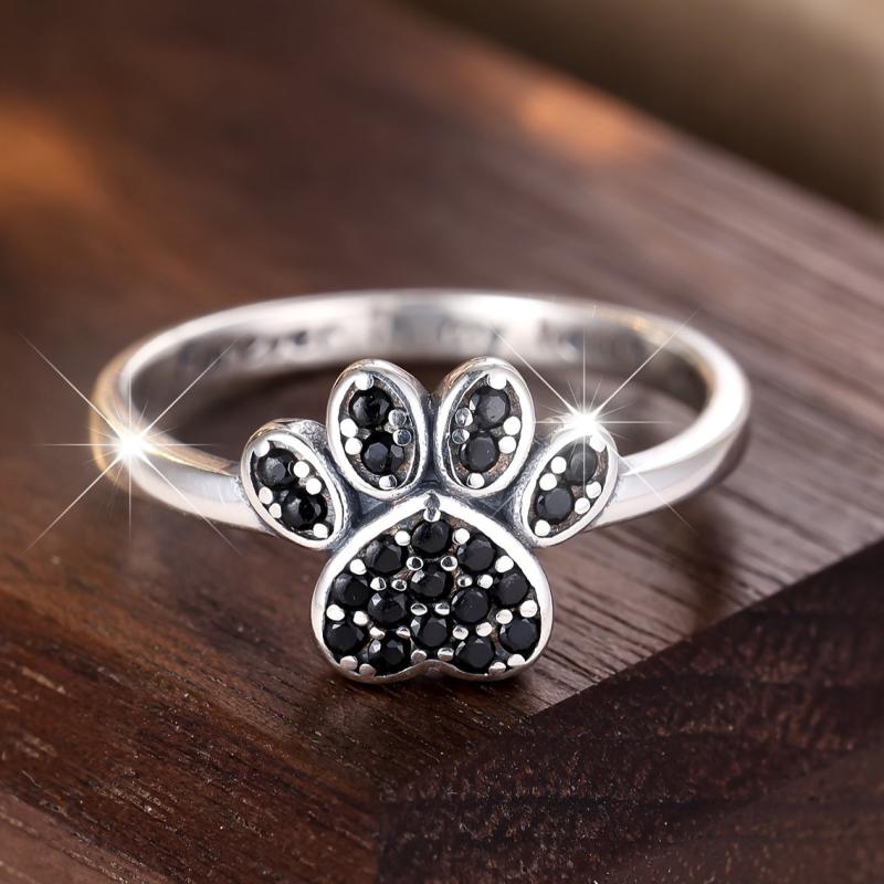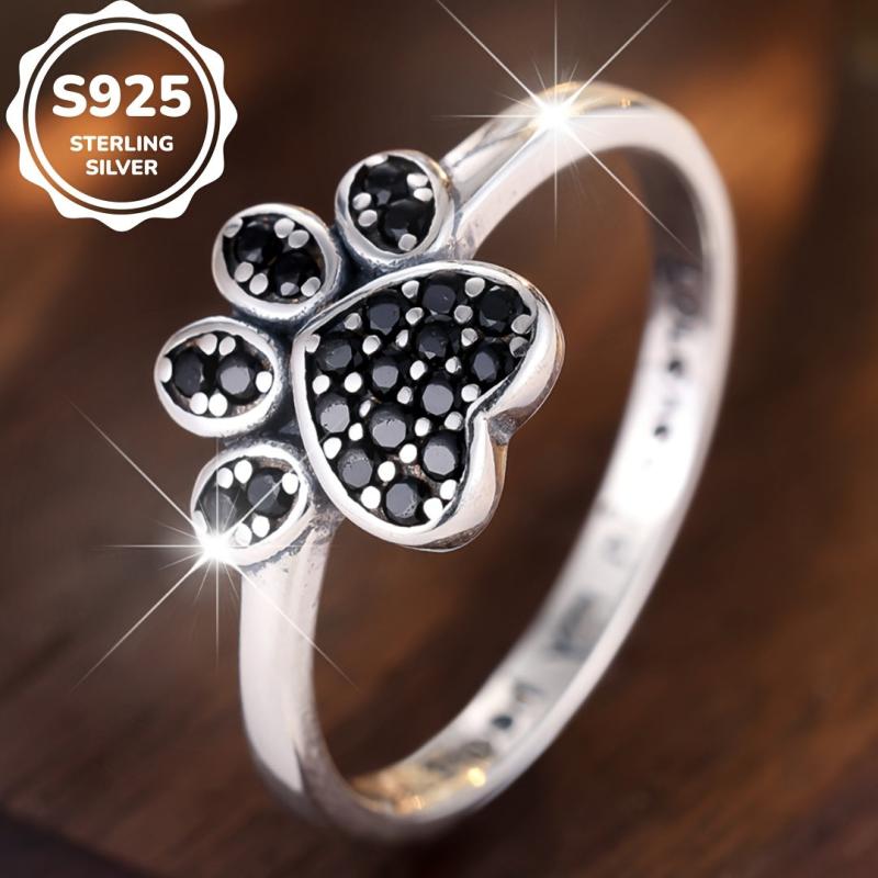 A stunning 925 sterling silver ring featuring a cubic zirconia cat paw print design. This versatile accessory is perfect for daily wear and makes a thoughtful gift for cat lovers.