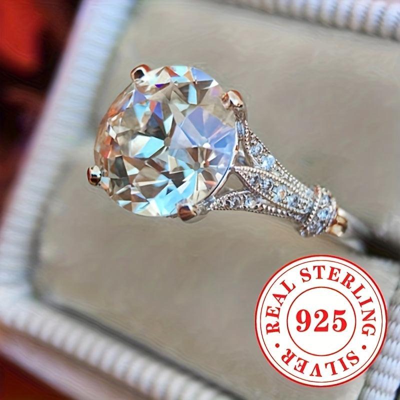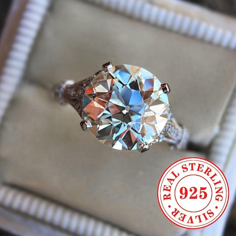 This stunning 925 sterling silver engagement ring features a sparkling cubic zirconia stone in a classic 4-prong setting. Perfect for proposals and weddings, this ring is a timeless symbol of love and commitment. Rhodium plated for added shine and durability.