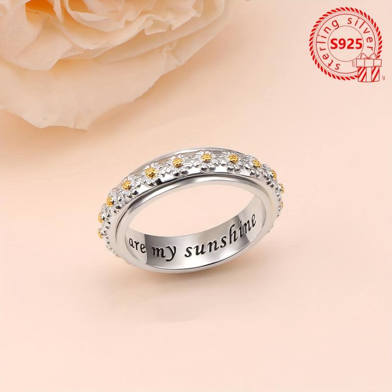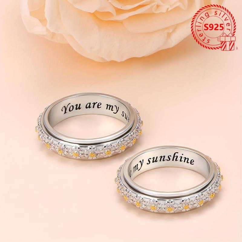This stunning 925 silver daisy band ring features intricate floral engraving and a sweet 'You Are My Sunshine' inscription. It's perfect for daily wear and special occasions, adding a touch of boho style to any outfit.