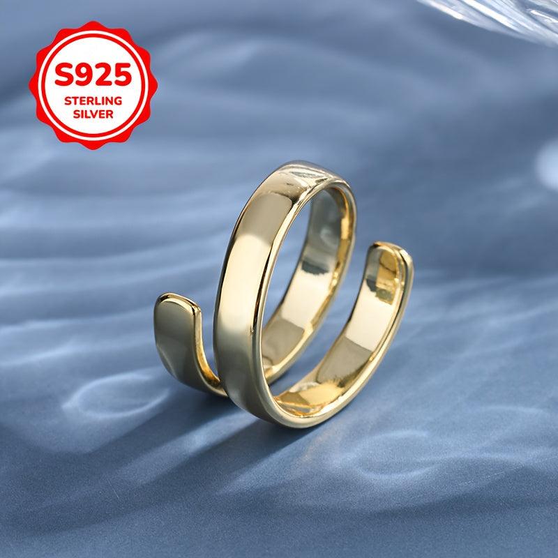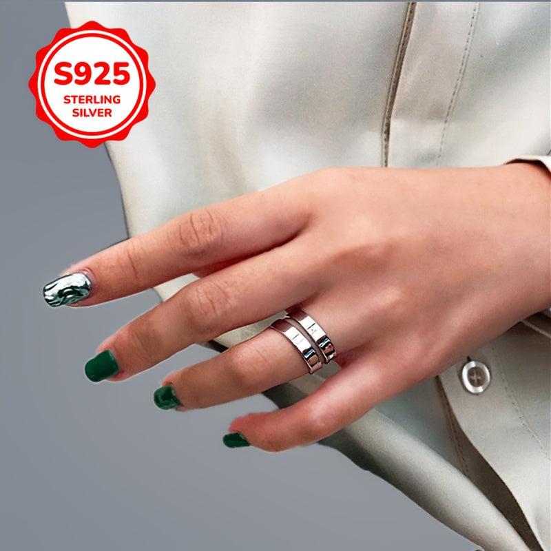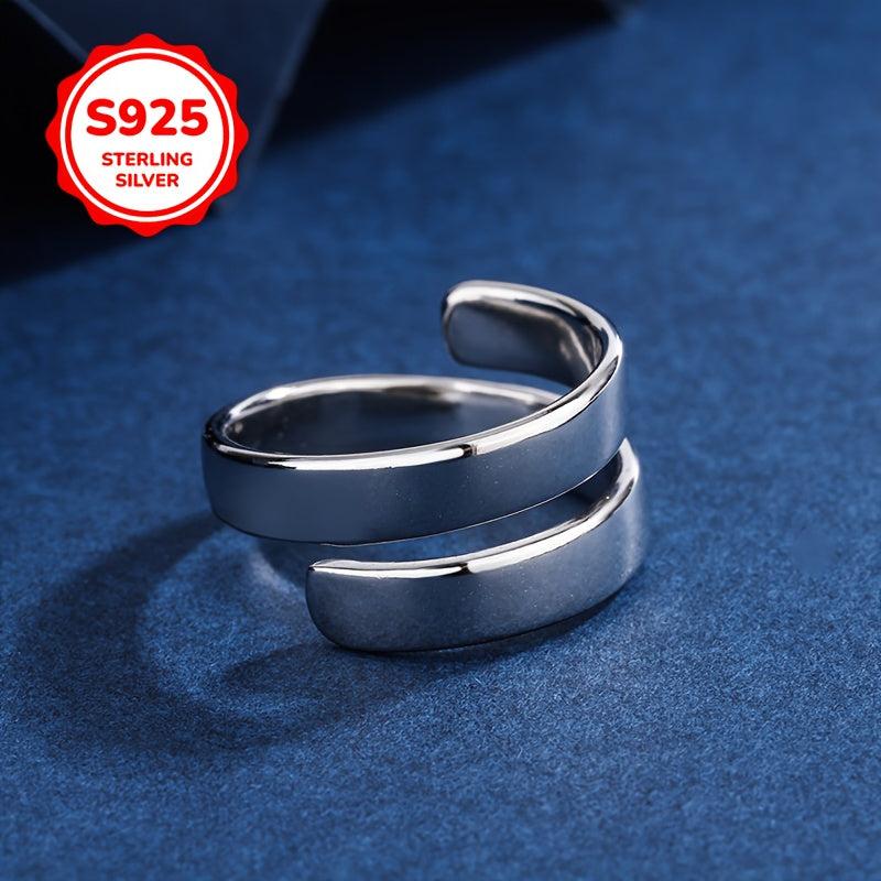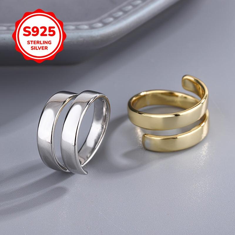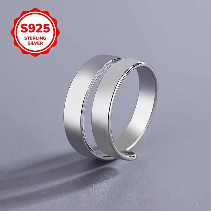 This adjustable opening ring is made of 925 silver, suitable for those with low allergy. The matte finish and double line double layer design create a unique and stylish look. Perfect for wearing on the index finger or as a tail ring.