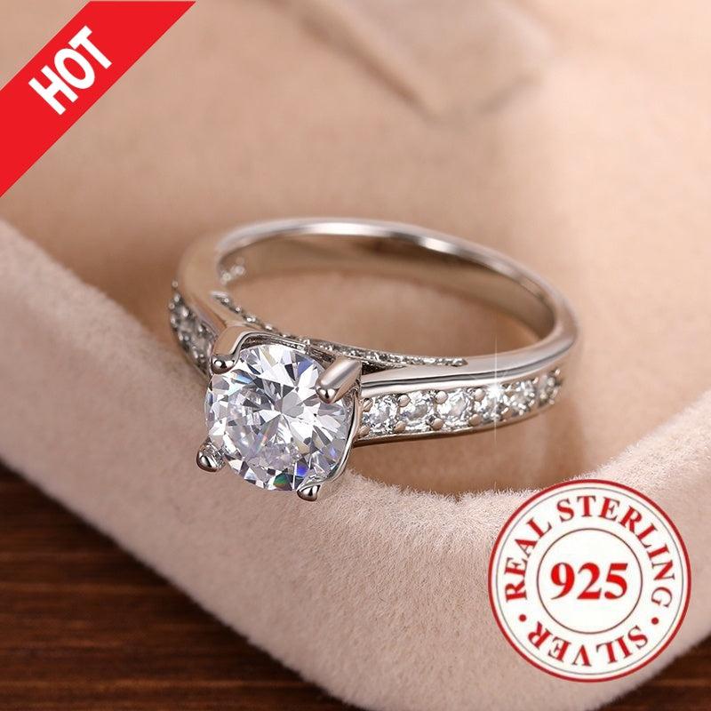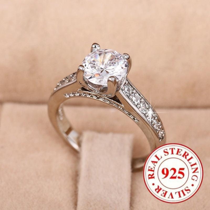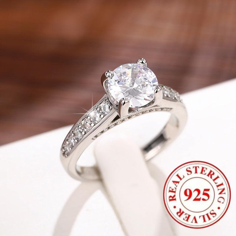 This 925 Sterling Silver Women's Engagement Ring features a sparkling Cubic Zirconia solitaire design, perfect for all seasons and occasions.