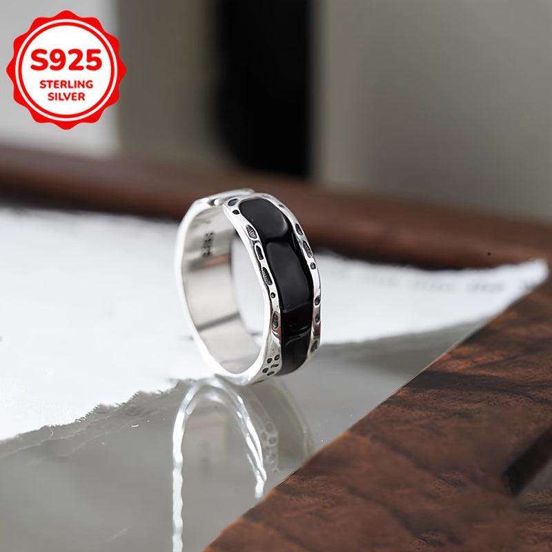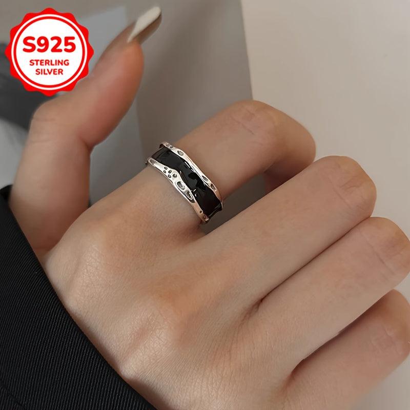 This 925 sterling silver epoxy ring features an irregular convex wide band design that is adjustable to fit different finger sizes. It is hypoallergenic and perfect for women. Makes a great gift for couples.