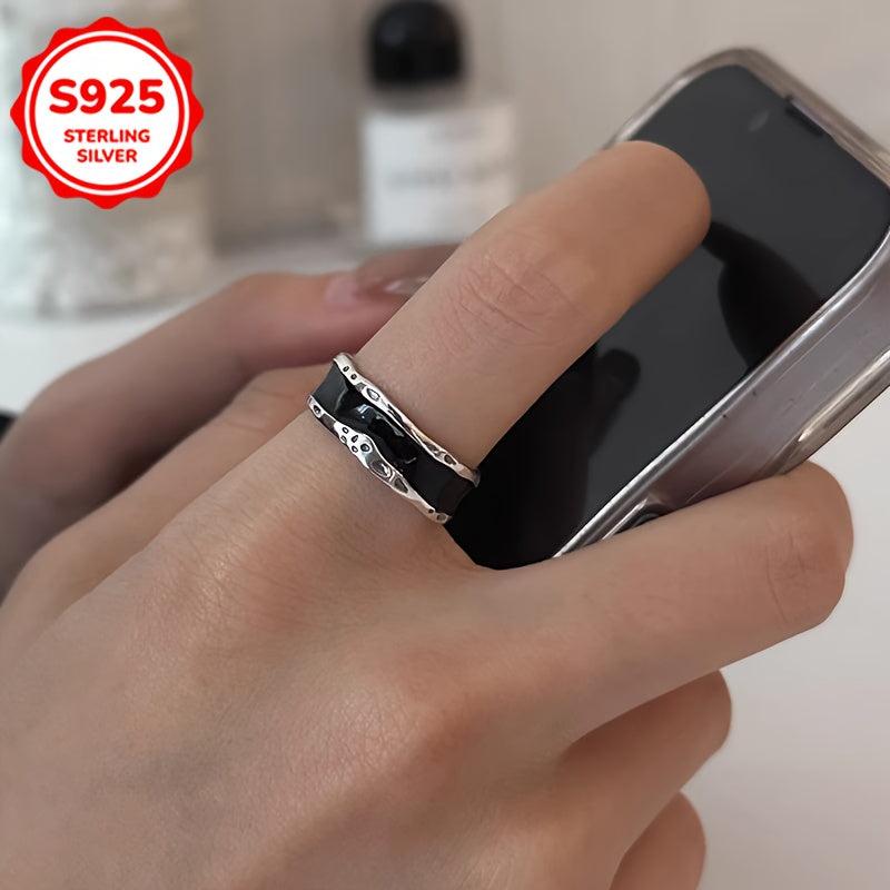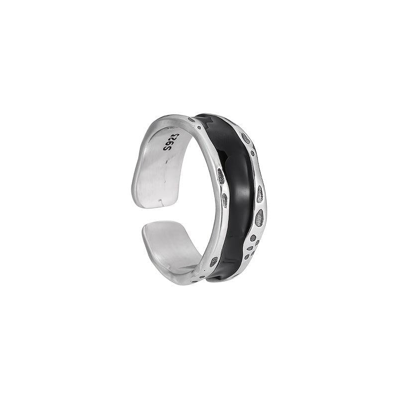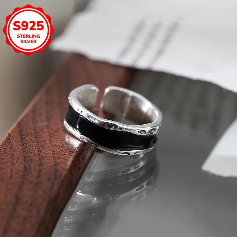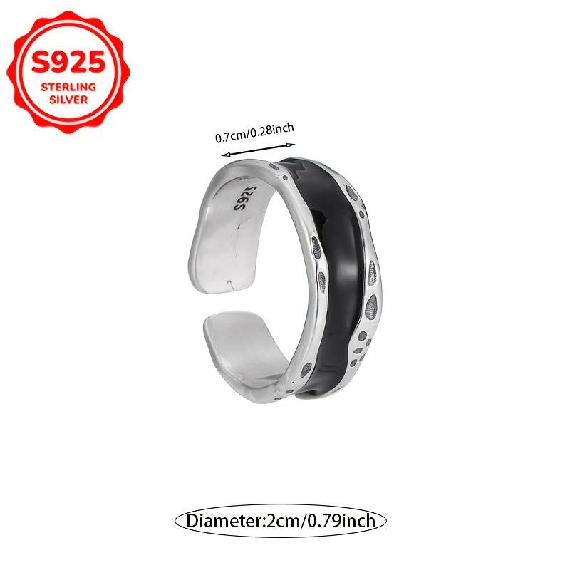 925 Silver Epoxy Ring Irregular Wide Band Adjustable Open Finger Ring
