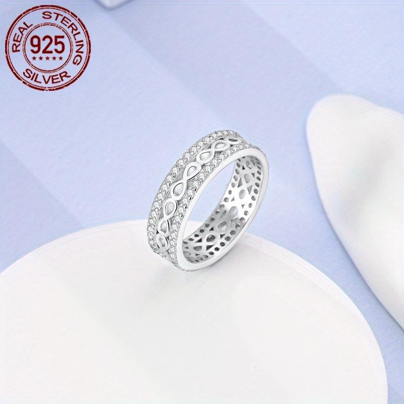 This elegant ring set is made of sterling silver and features synthetic zirconia stones. It is hypoallergenic and perfect for weddings, parties, birthdays, or Christmas gifts.