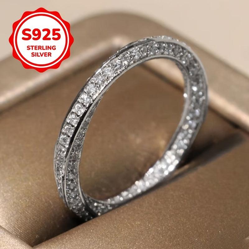 This stunning 925 sterling silver eternity ring features a twisted design with synthetic zirconia stones, perfect for weddings or everyday wear.