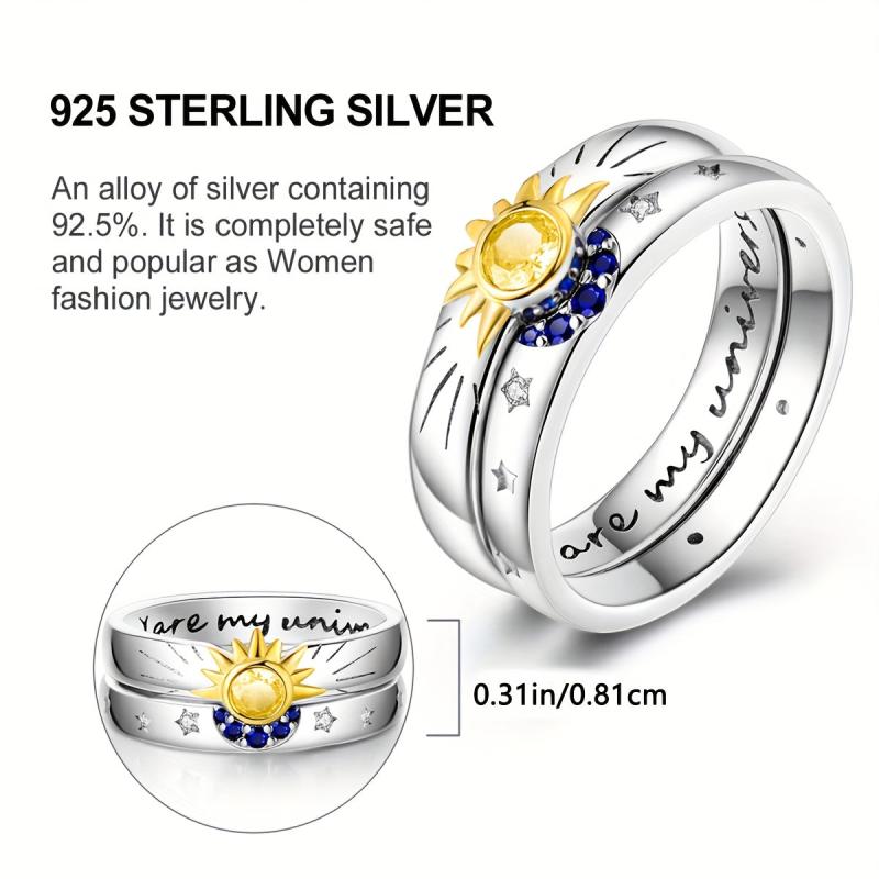 This stunning ring set features a galaxy-inspired design crafted in 925 sterling silver, perfect for weddings, engagements, and birthdays.
