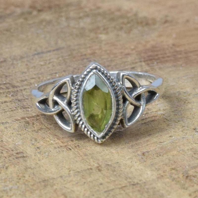 This elegant ring features a marquise shape design with natural gemstones including Moonstone, Peridot, and Topaz. It is a perfect gift for her.