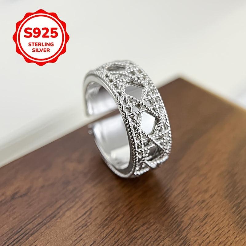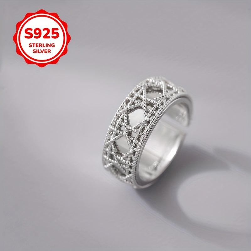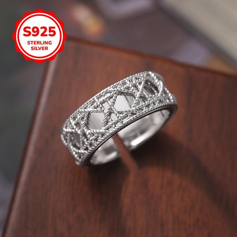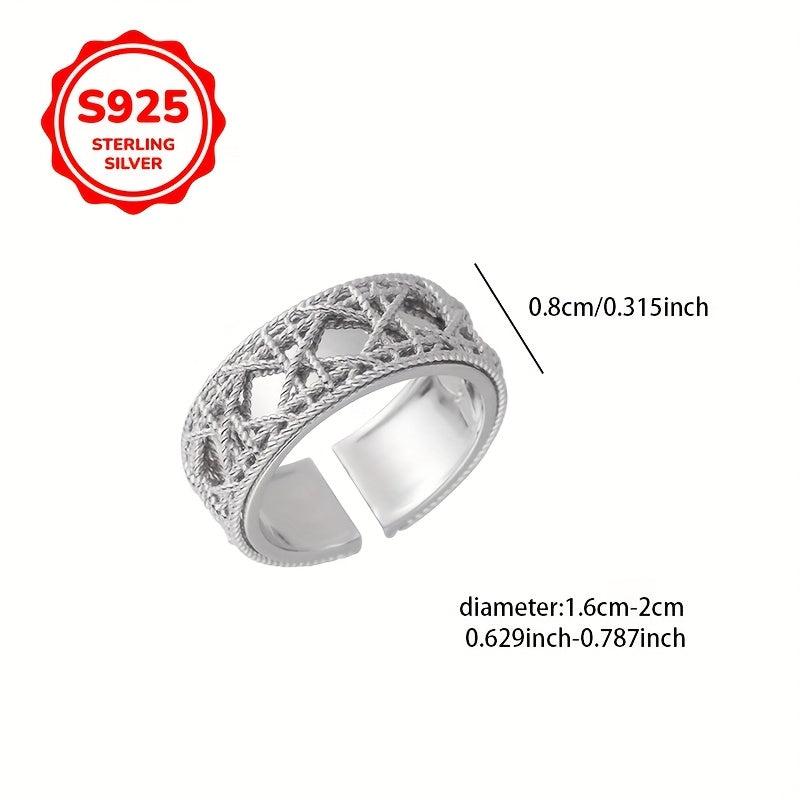 Upgrade your style with this hypoallergenic ring featuring a unique geometric pattern. The adjustable design makes it suitable for the index finger, adding a touch of elegance to any outfit.
