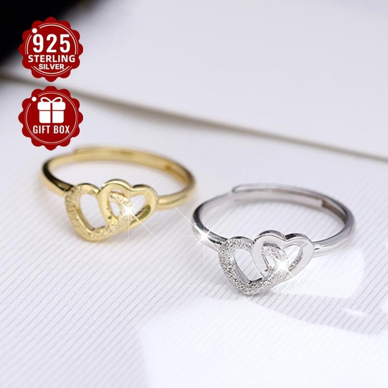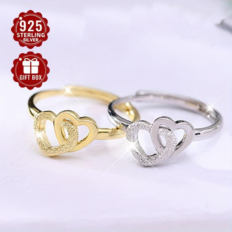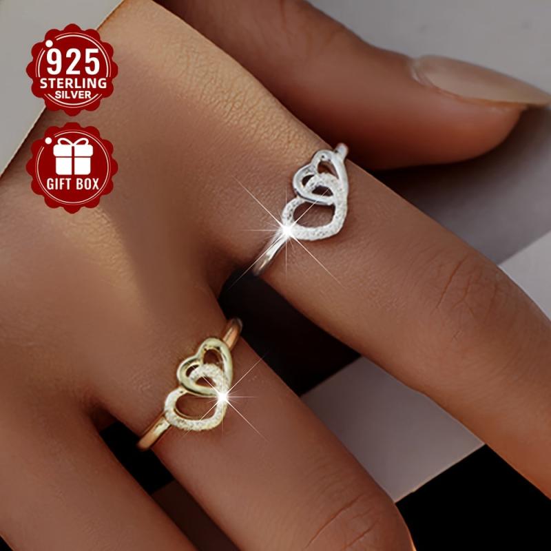 This vintage-inspired 925 sterling silver heart-shaped ring is perfect for proposals, daily wear, and special occasions. The adjustable open band adds a sparkling touch to any outfit.