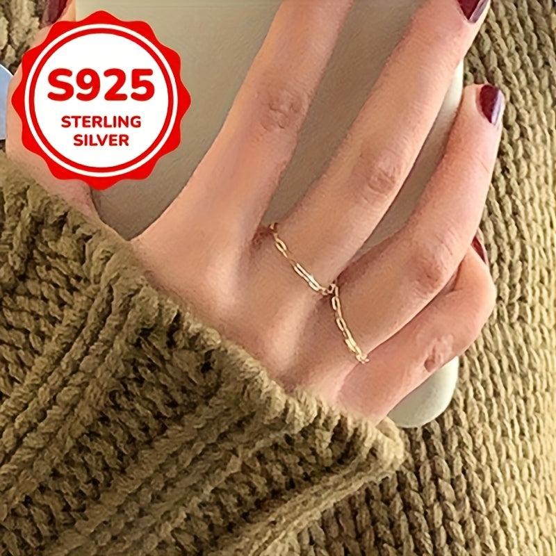 This stylish ring is made of 925 silver with a hollow square chain design. Perfect for both men and women.