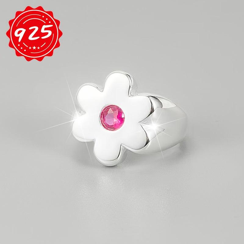 This 925 silver ring is hypoallergenic and features a beautiful flower design. Perfect for wearing on your index finger or as a tail ring.