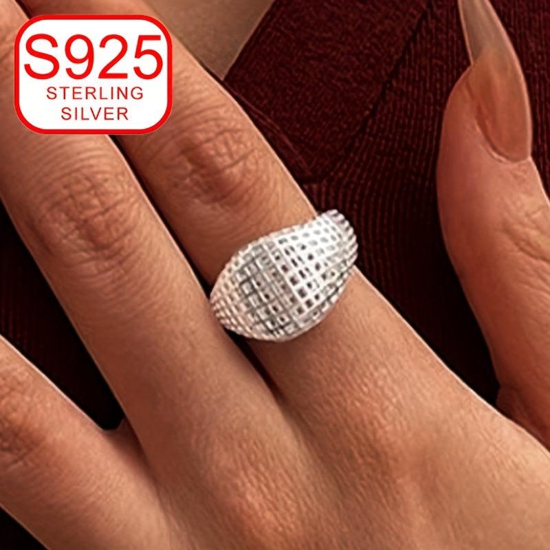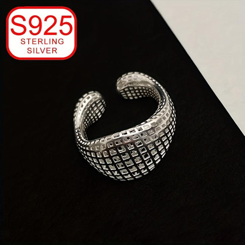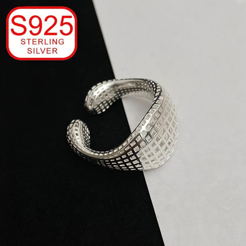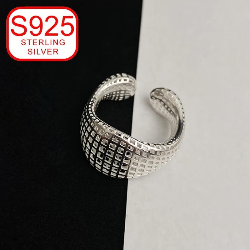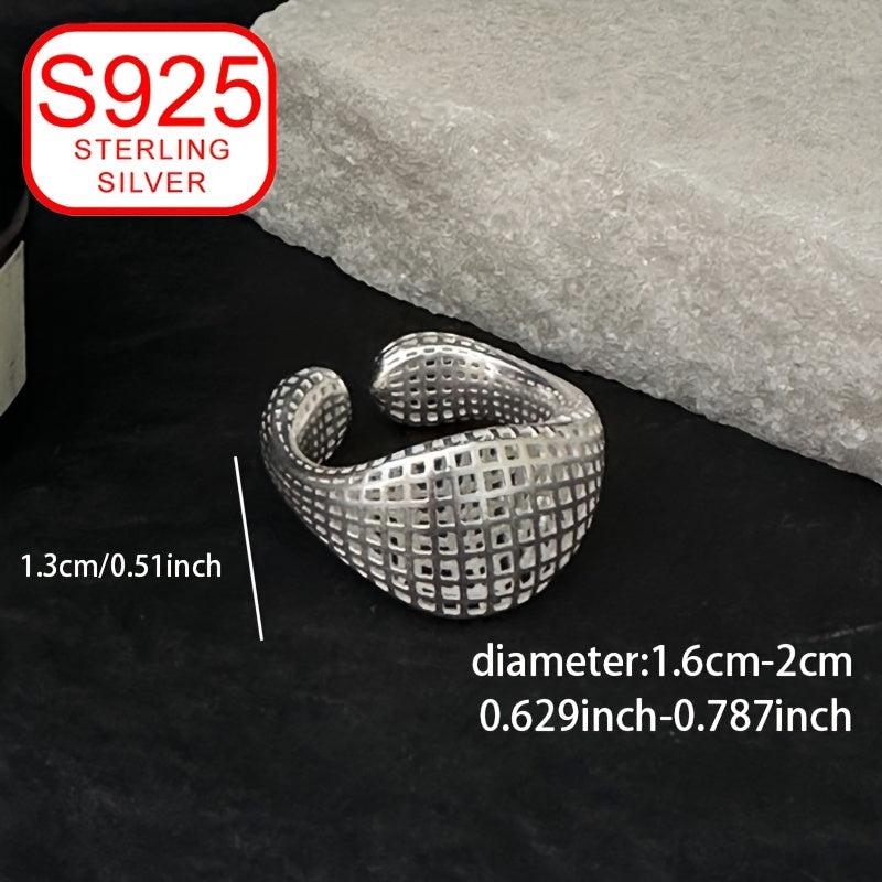 This 925 silver ring features a stylish minimalist design with a geometric hollow grid pattern that is perfect for all seasons. It is hypoallergenic and can be worn on the index finger as a versatile and sophisticated band.