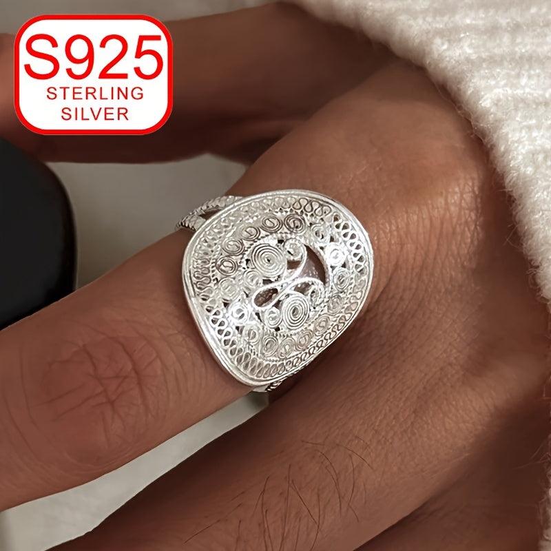 This 925 silver ring is hypoallergenic and features a stylish hollow texture design. It is perfect for wearing on the index finger or as a cocktail ring, making it versatile for couples or friends.