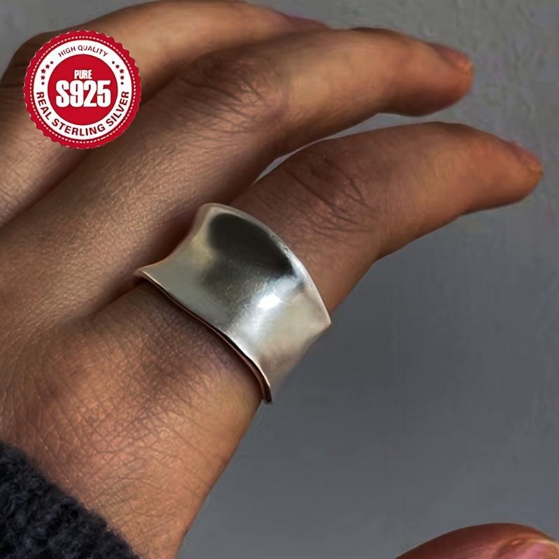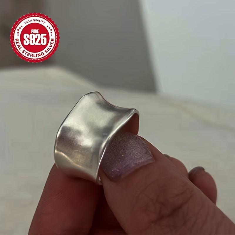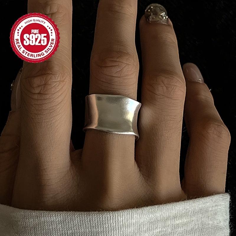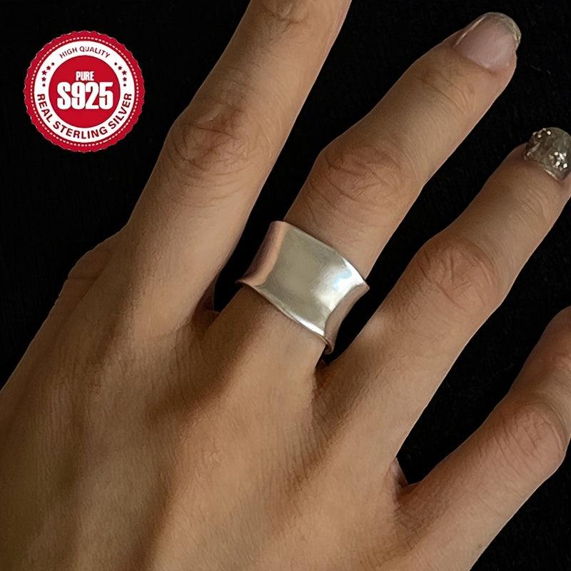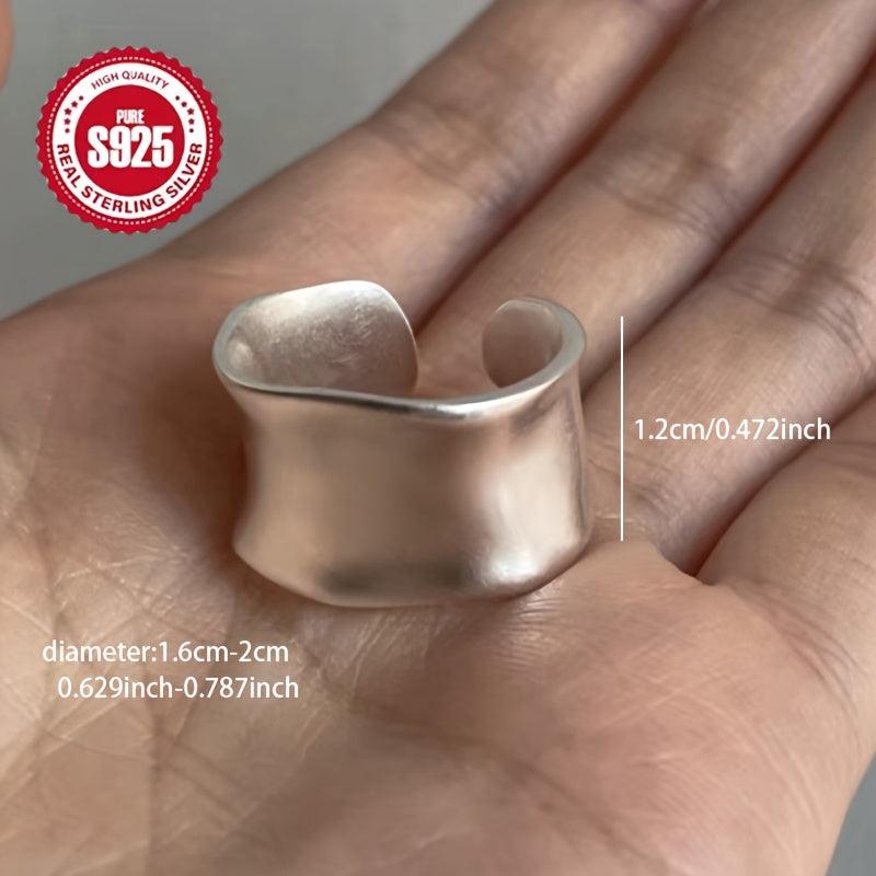 This 925 silver ring features a matte wide face design that exudes a high-end sense. Perfect for couples or girls, this versatile niche ring can be worn as an index finger or tail ring.