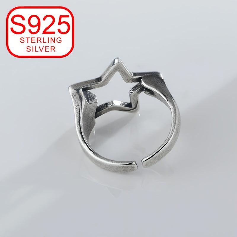 This unique 925 silver ring features a retro design with a hollow five-pointed star. It is hypoallergenic and perfect for women who love old-fashioned, versatile, and high-end fashion.