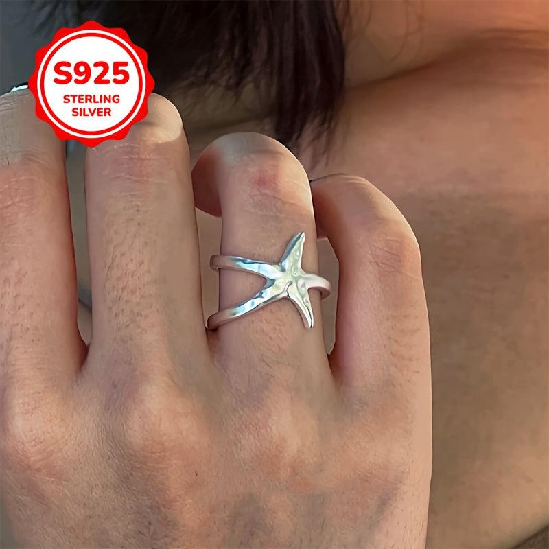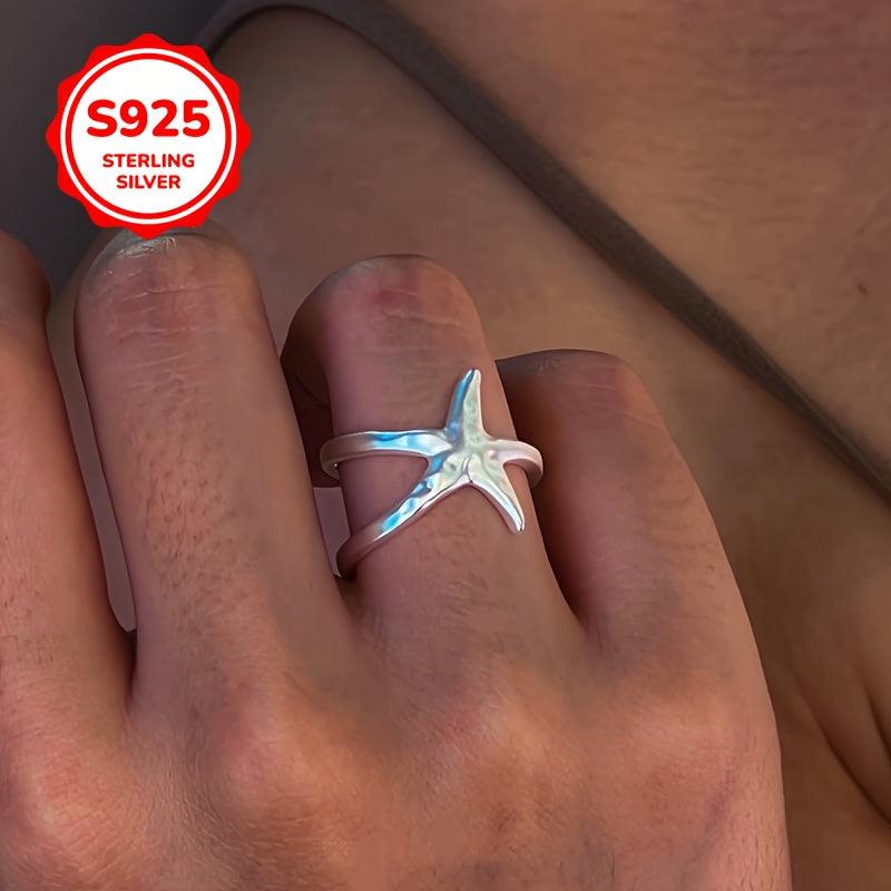 925 Silver Hypoallergenic Sea Star Open Adjustable Ring
