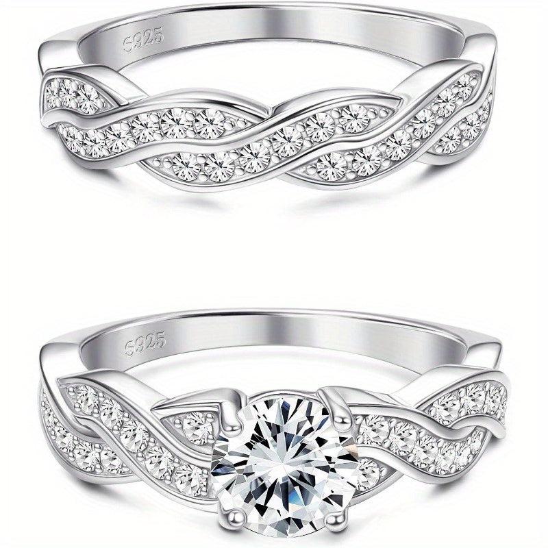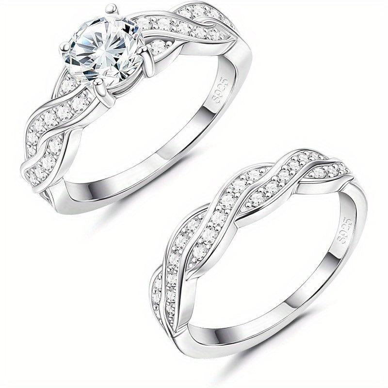 This stunning set features an infinity knot design with sparkling CZ stones, perfect for engagement or wedding. Made from high-quality 925 silver.