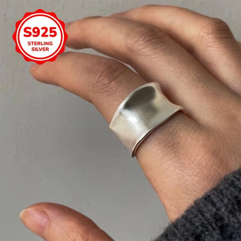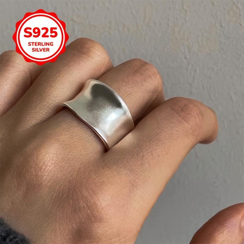 This 925 silver ring is low allergy and fashionable, perfect for everyday wear. Its wide band and adjustable design make it versatile and suitable for various occasions.