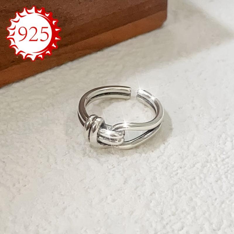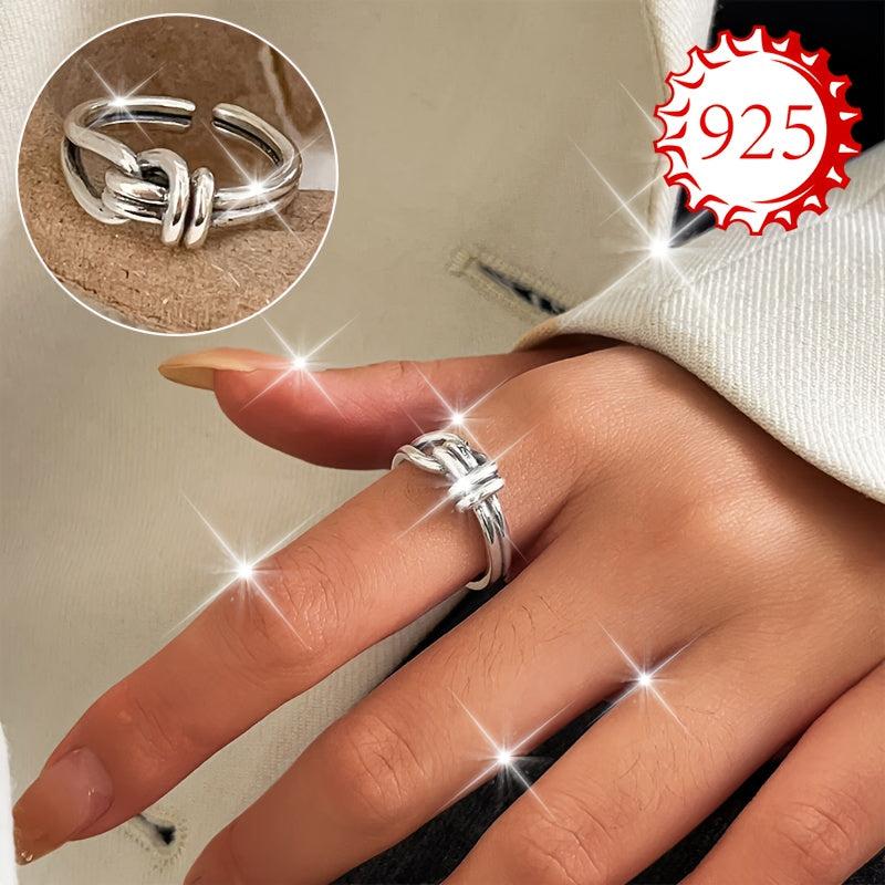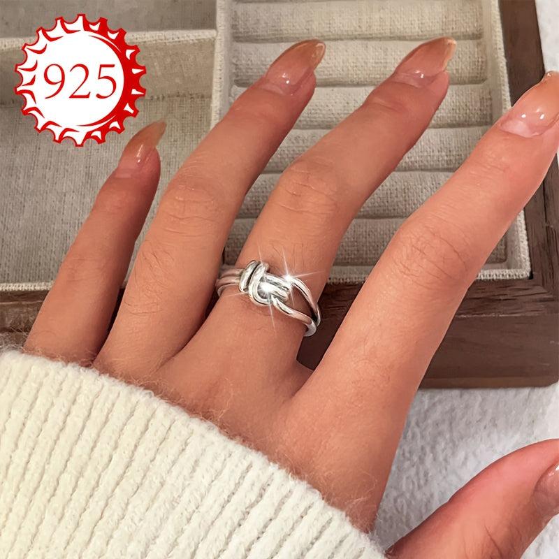 925 Silver Knot Ring for Women Dual Layer Rope - Hypoallergenic