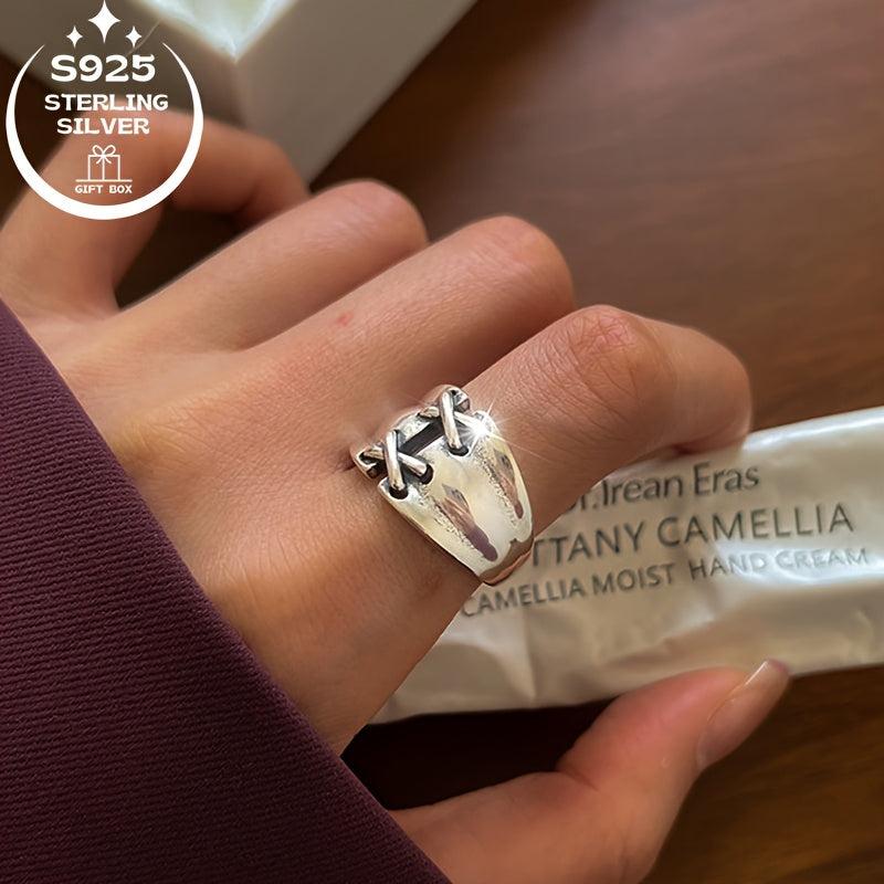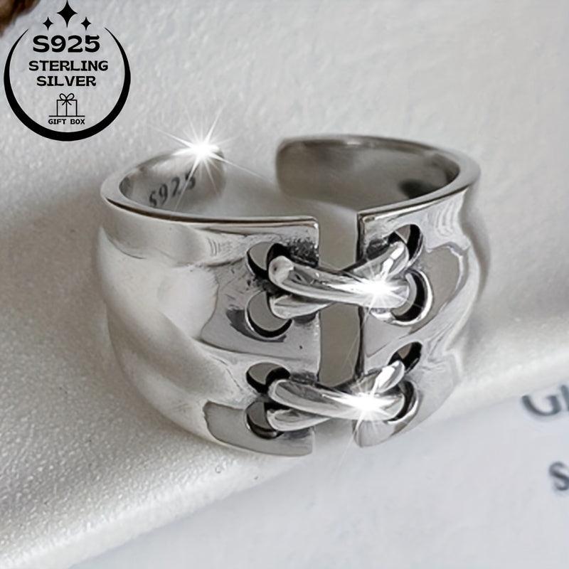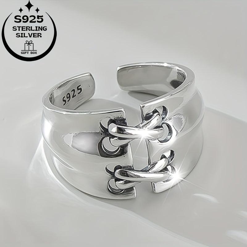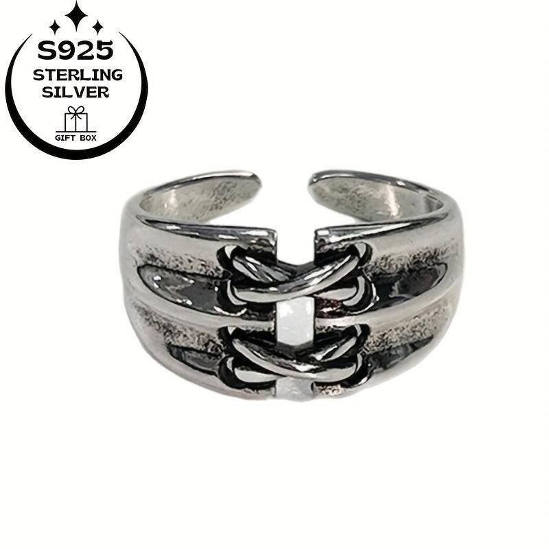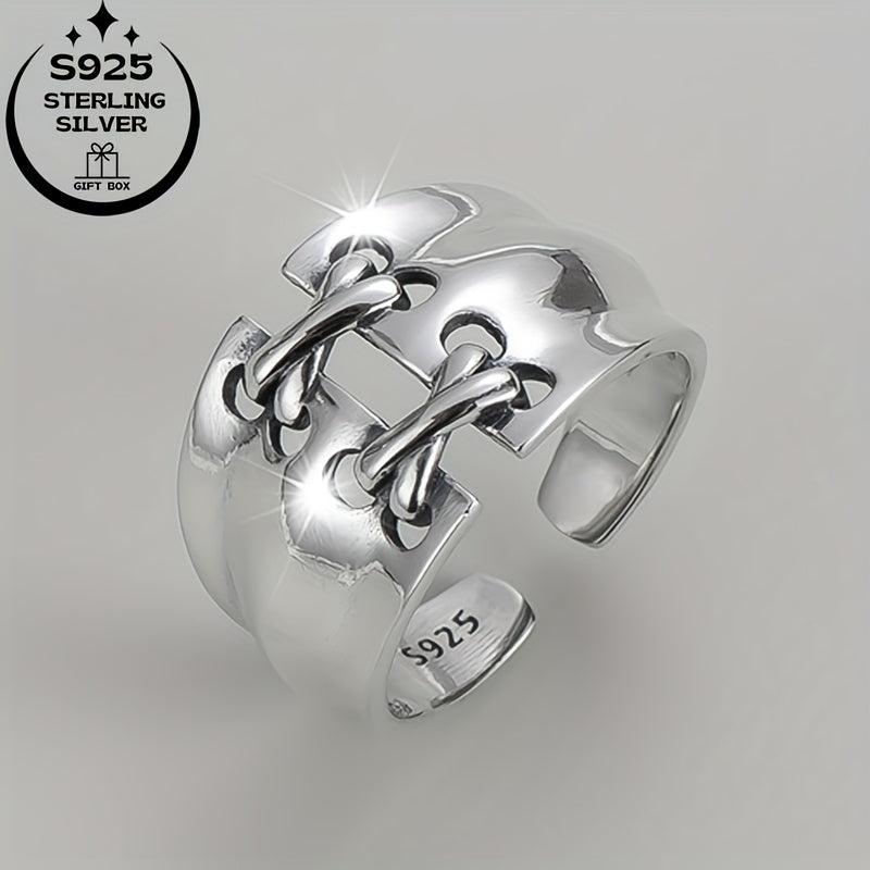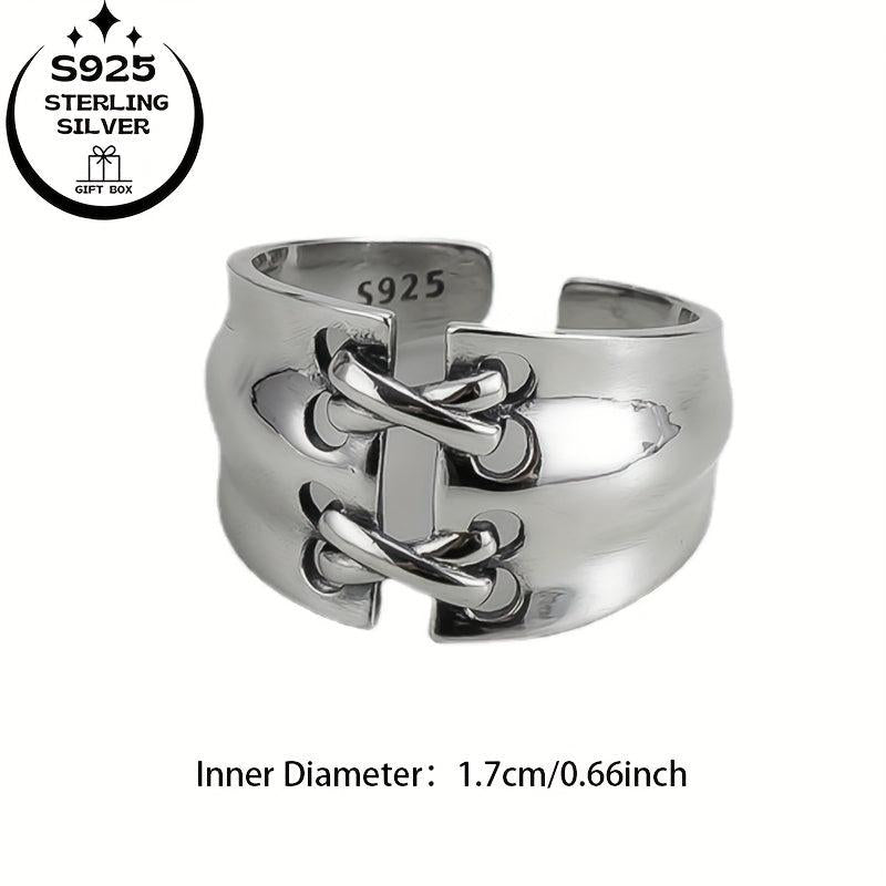 This striking 925 silver ring features a knotted wide band design, perfect for Mother's and Graduation Season. It comes with packaging and is suitable for music festivals. Easy to adjust for a comfortable fit.