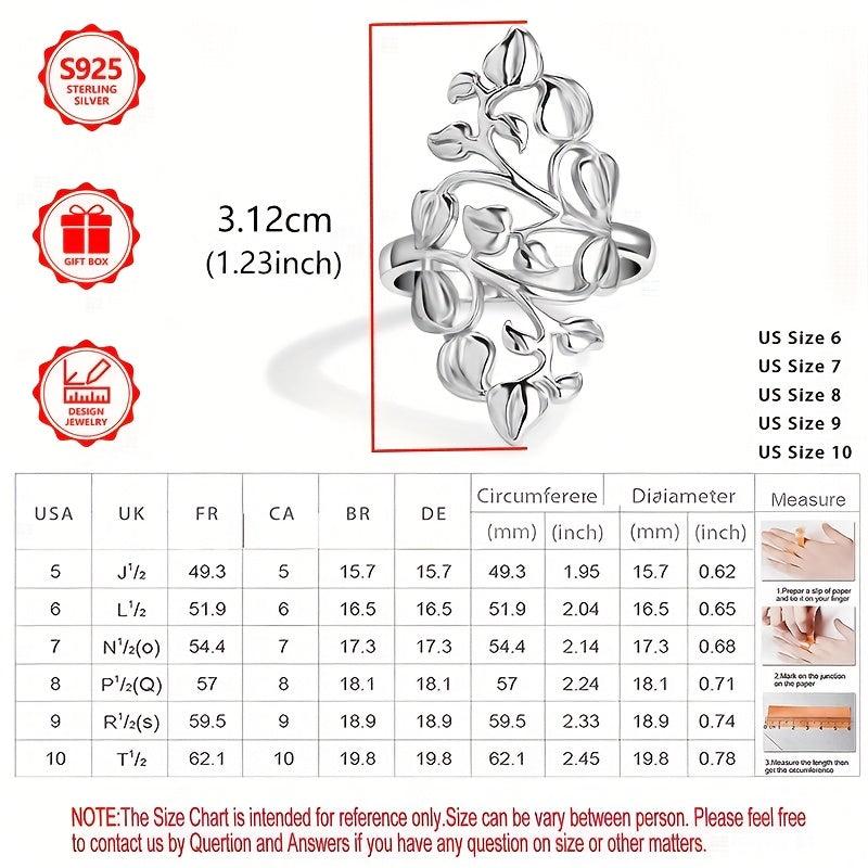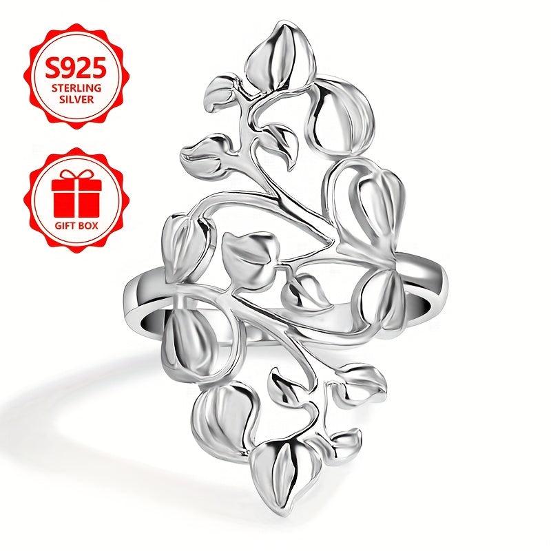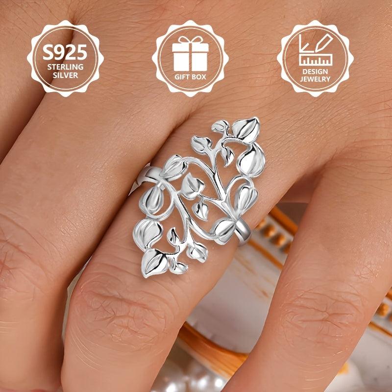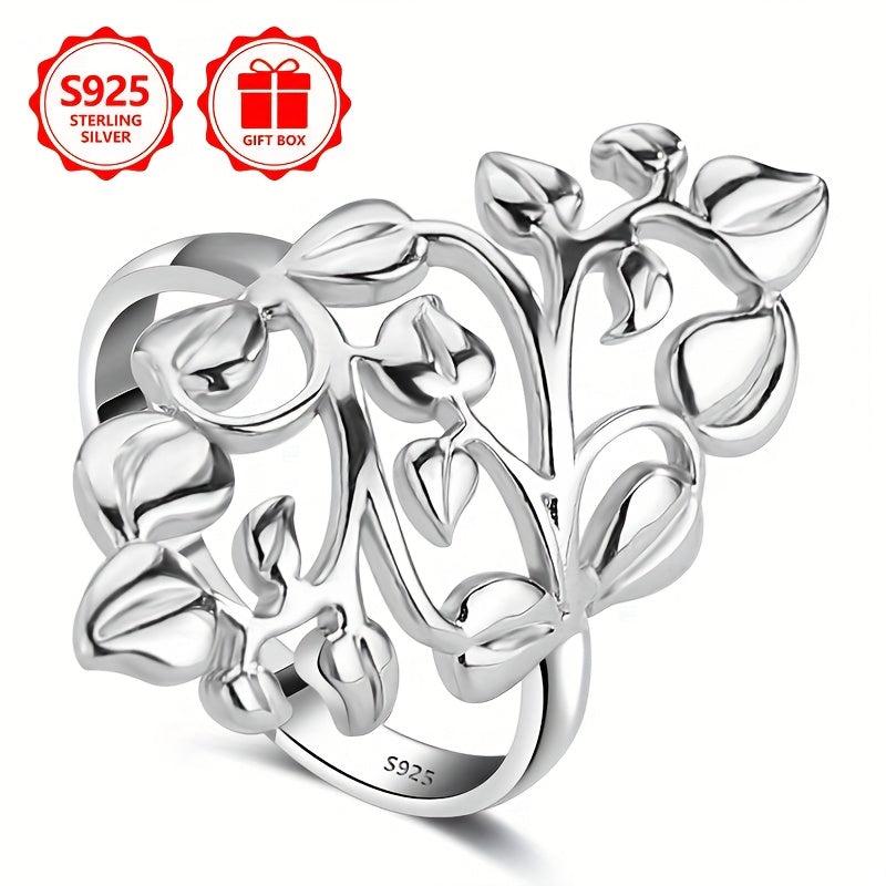 925 Silver Leaf Ring Women's Jewelry Gift El
