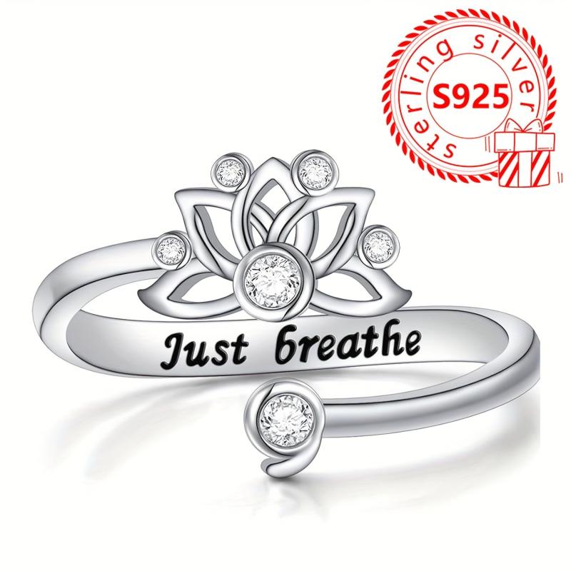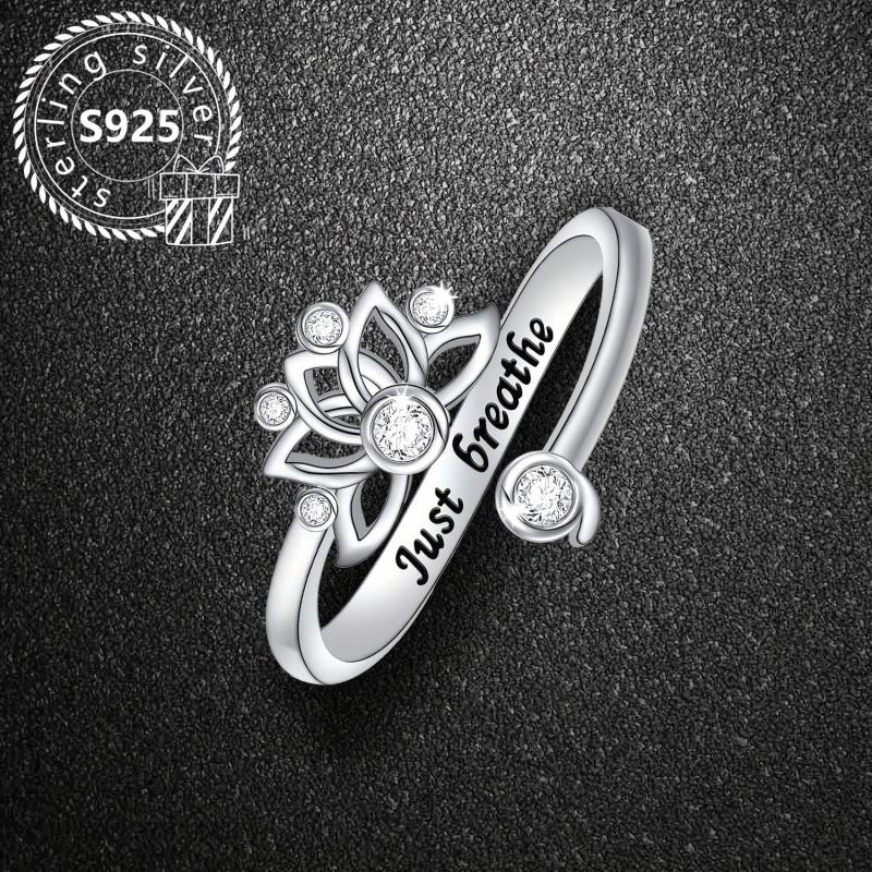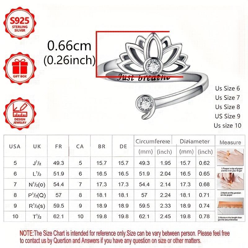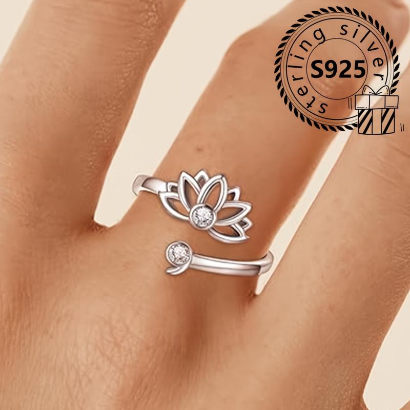 Enhance your daily meditation practice and emotional balance with this beautiful lotus yoga chakra ring. Crafted from 925 sterling silver, the ring features a cubic zirconia inlay for added elegance.