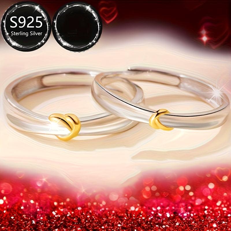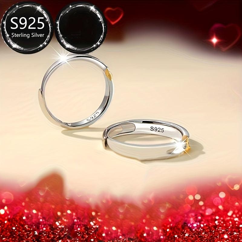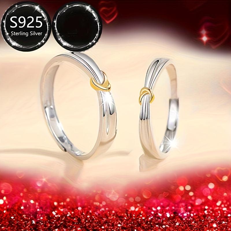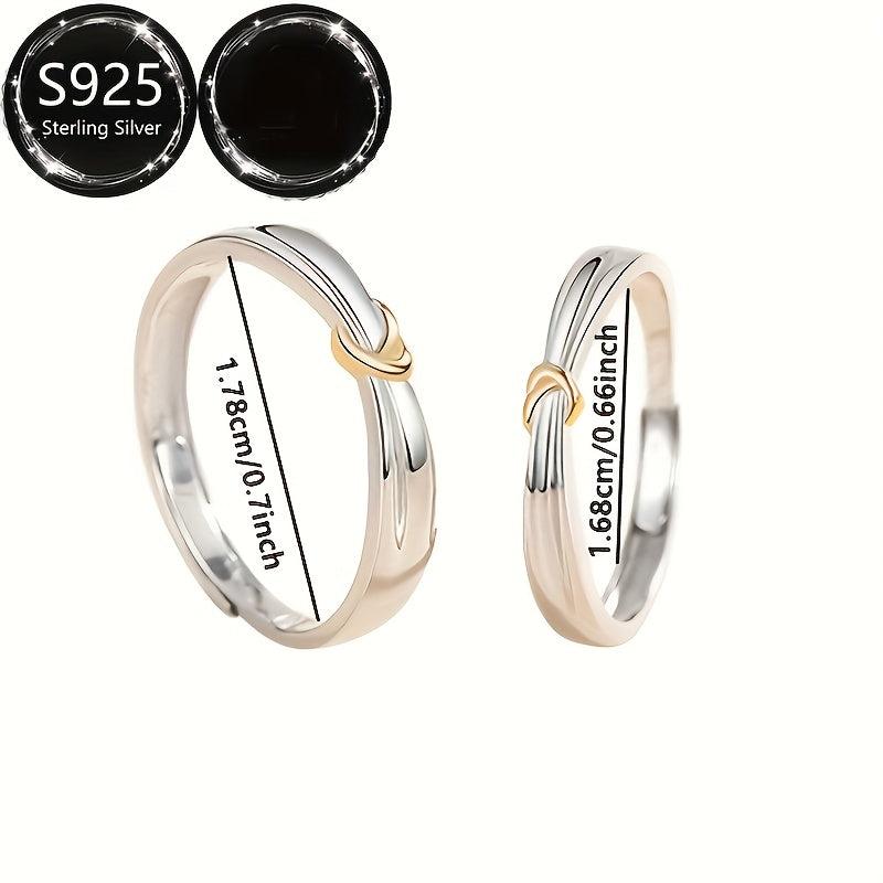Celebrate your love with this exquisite pair of adjustable open band rings. Made of 925 silver, these engagement rings symbolize the deep connection between you and your partner. The perfect gift to express your love and commitment.