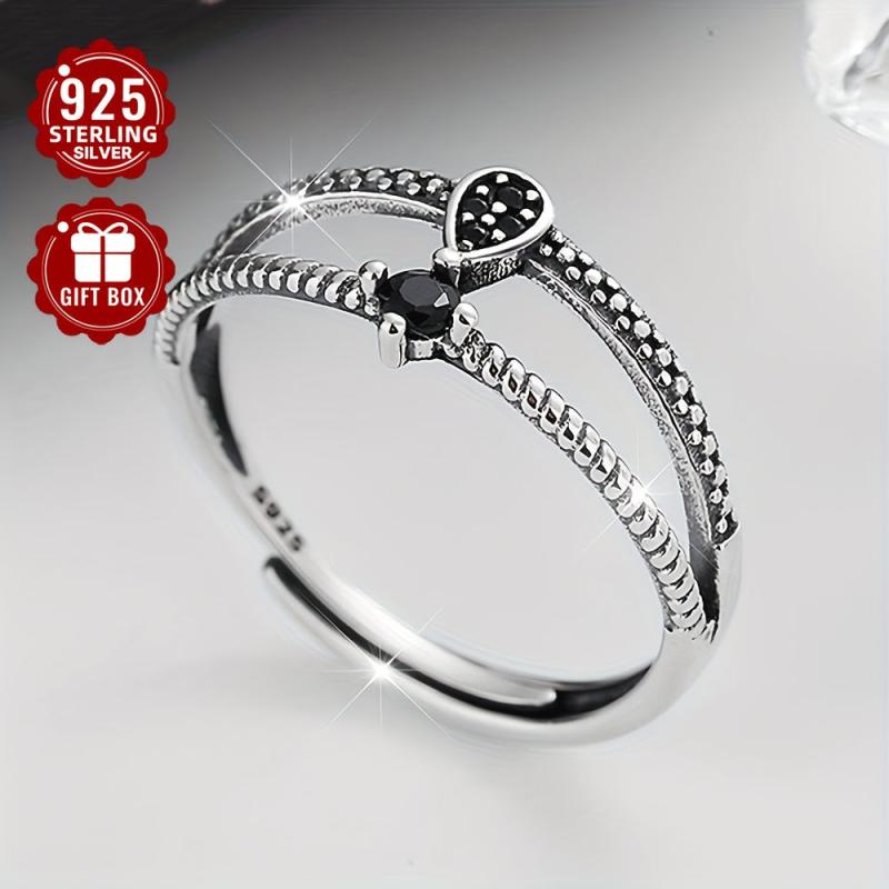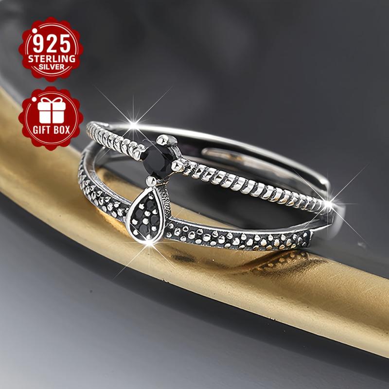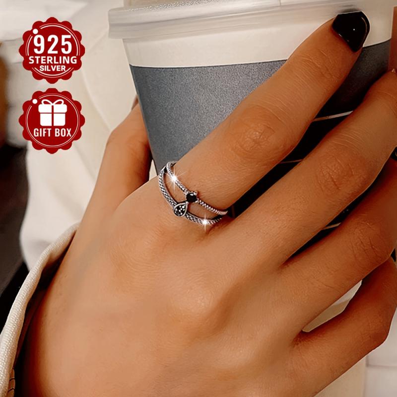 This stylish ring features a double layer geometric design with zirconia accents. Crafted from high-quality 925 sterling silver, it's a versatile accessory for men and women.