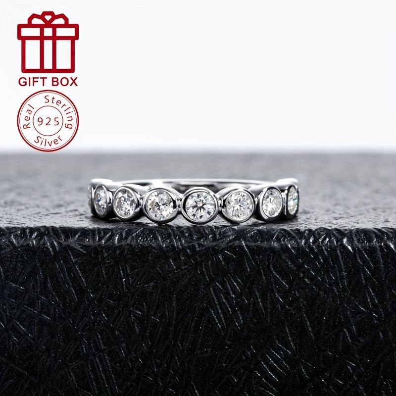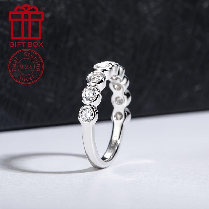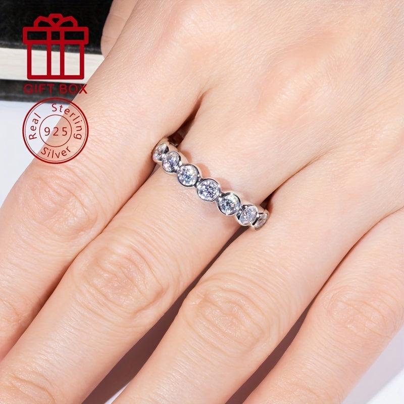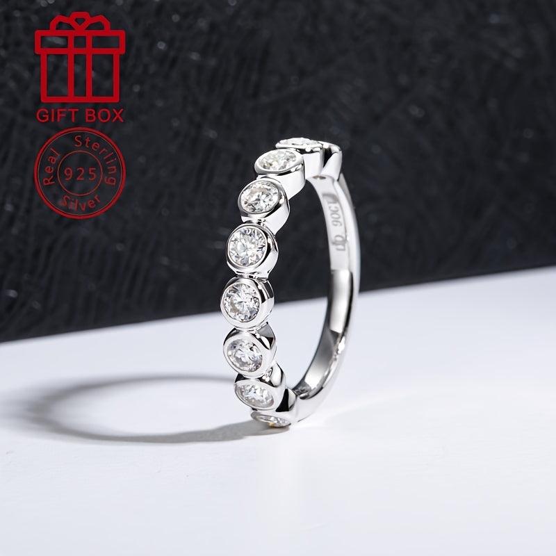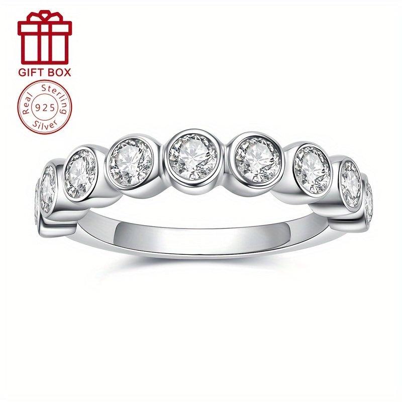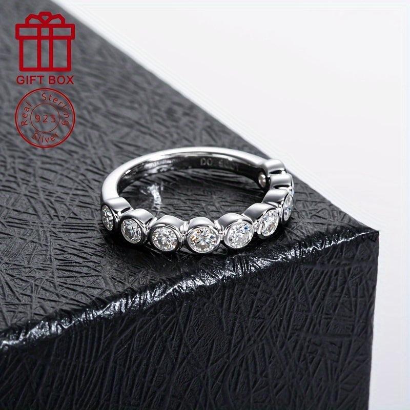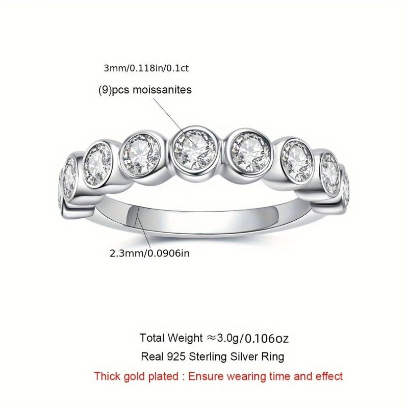 Beautiful 925 silver ring featuring 9 stone moissanite baguette cut design. Perfect for weddings, anniversaries, or as a gift for friends. Total weight of 0.9CT.