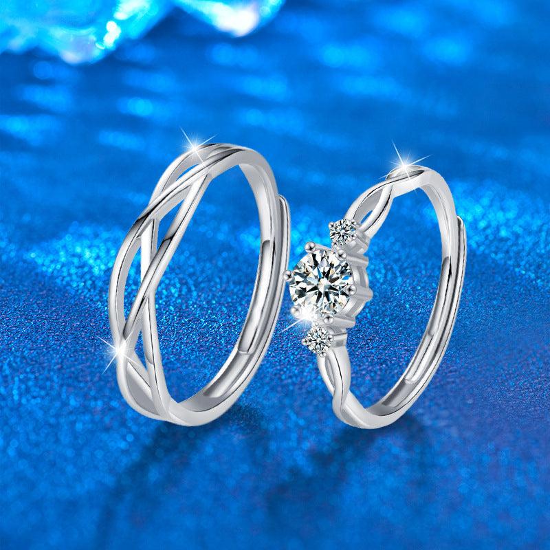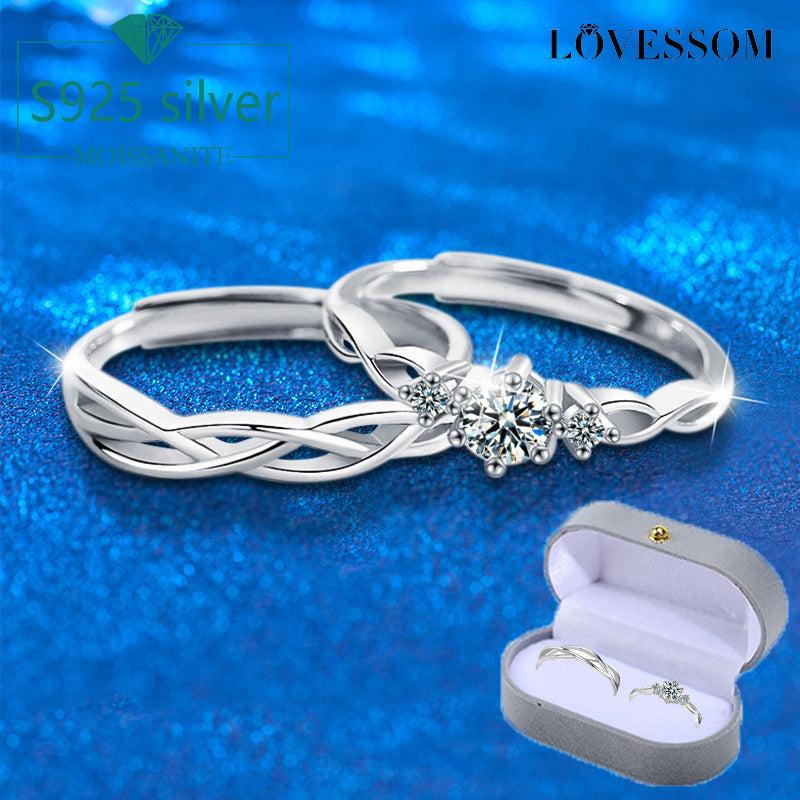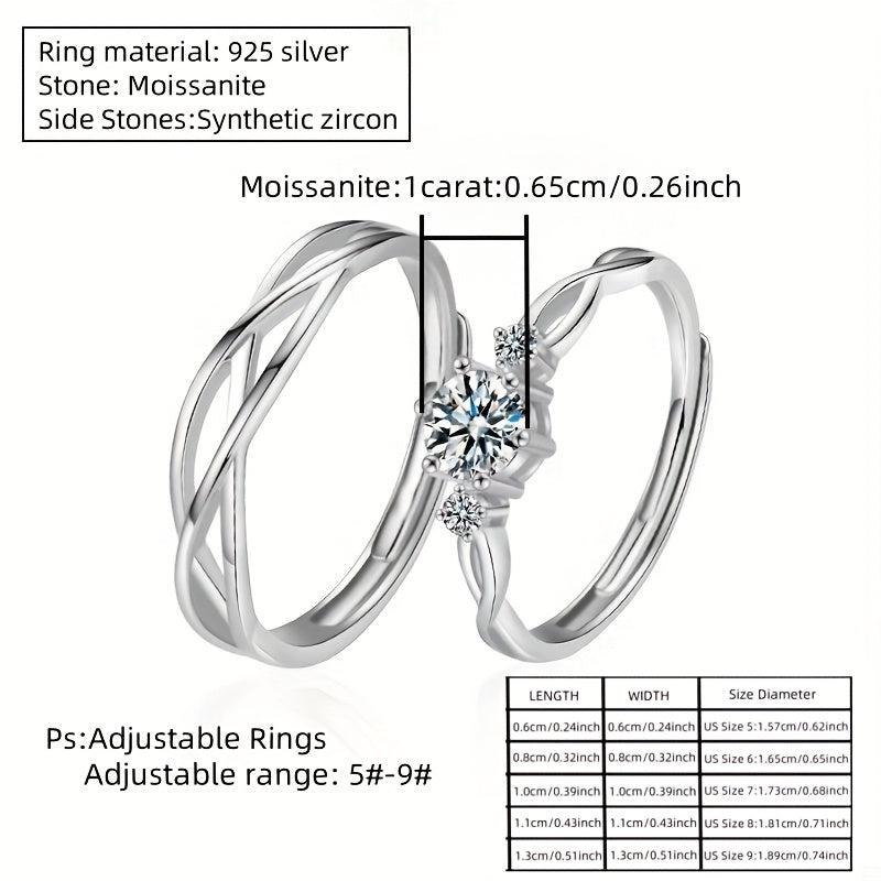 This stunning 925 silver moissanite couple ring features an adjustable opening, perfect for engagements, weddings, anniversaries, and special occasions. The ring comes in a beautiful box and weighs about 6g.