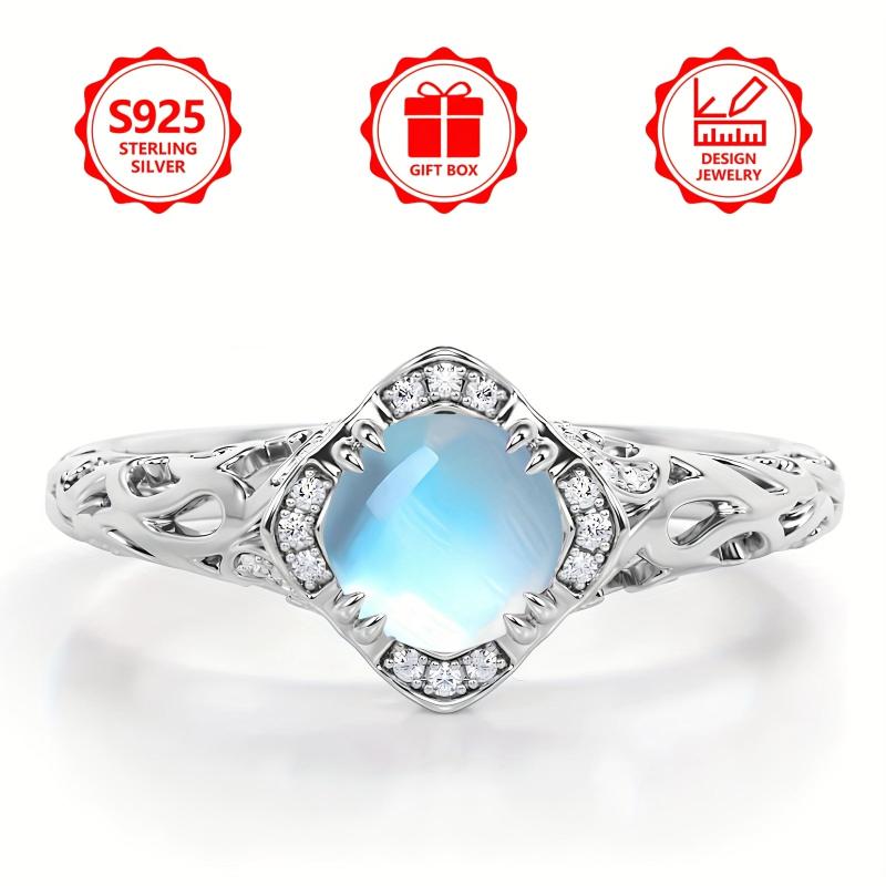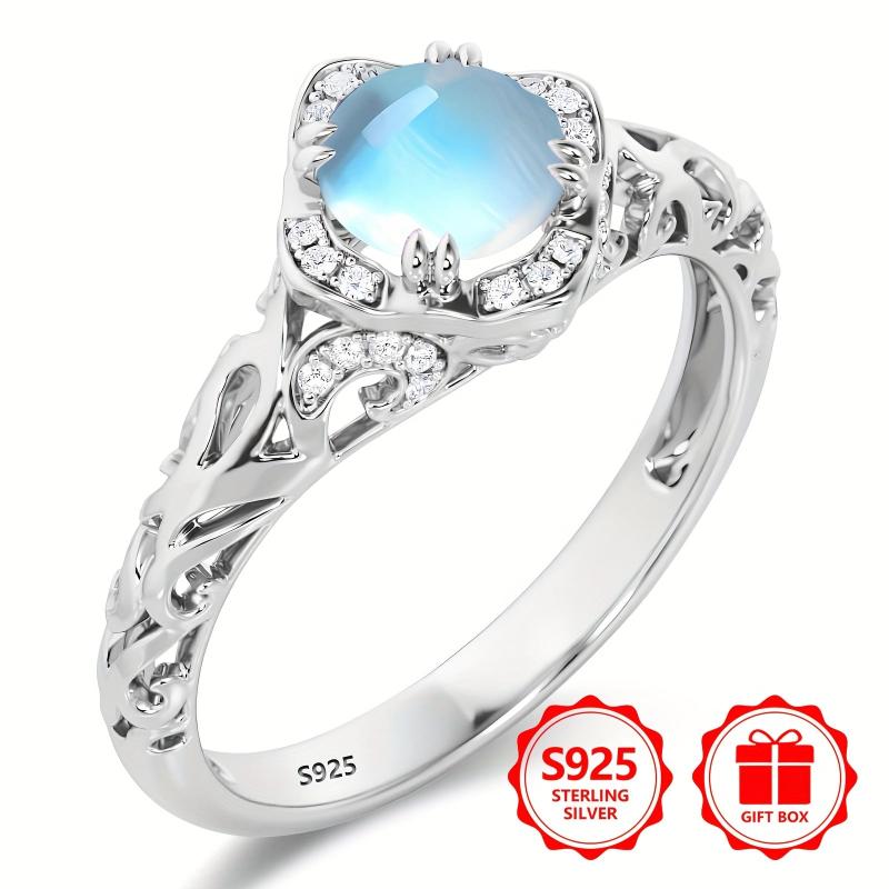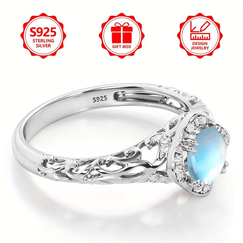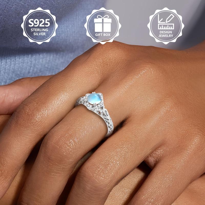 Elegant and lightweight moonstone ring crafted from high-quality 925 sterling silver. Perfect for daily wear, weddings, banquets, and other occasions.