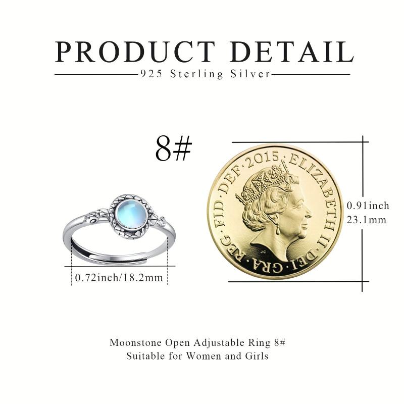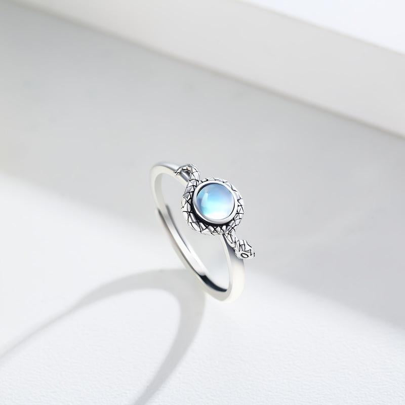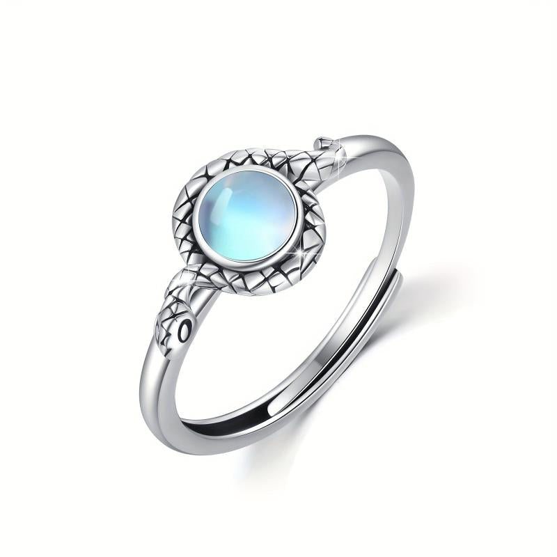 This stunning snake ring is made of 925 sterling silver and features a moonstone gemstone. The adjustable design makes it perfect for any finger size, and the intricate snake detailing adds a touch of unique style to your look.