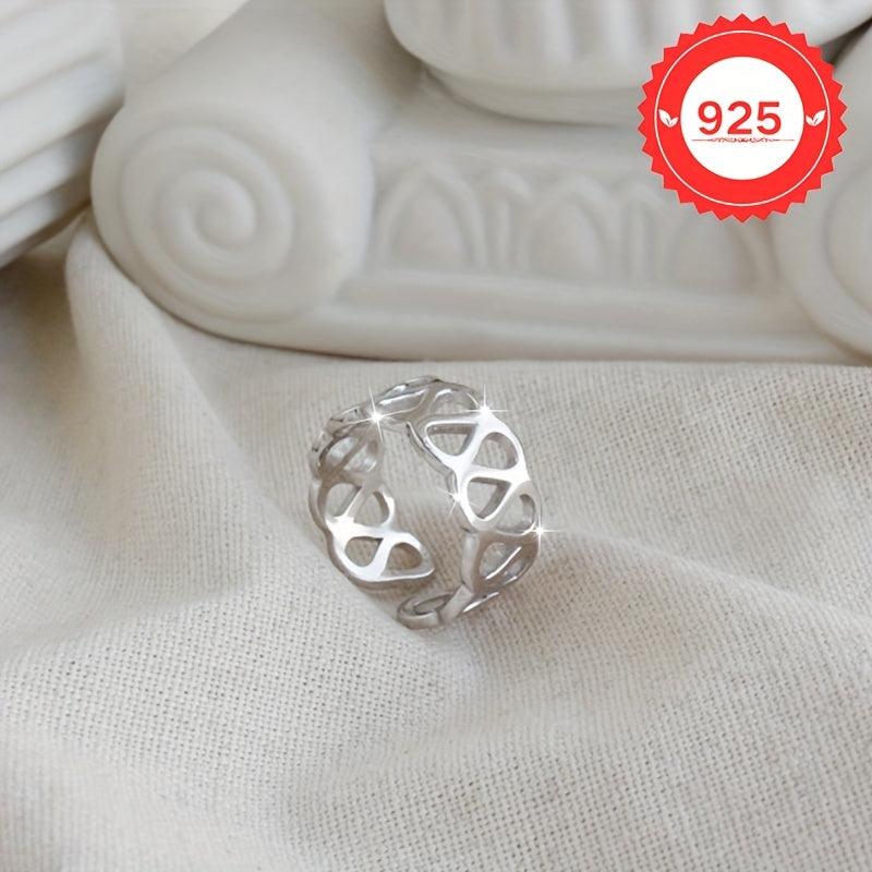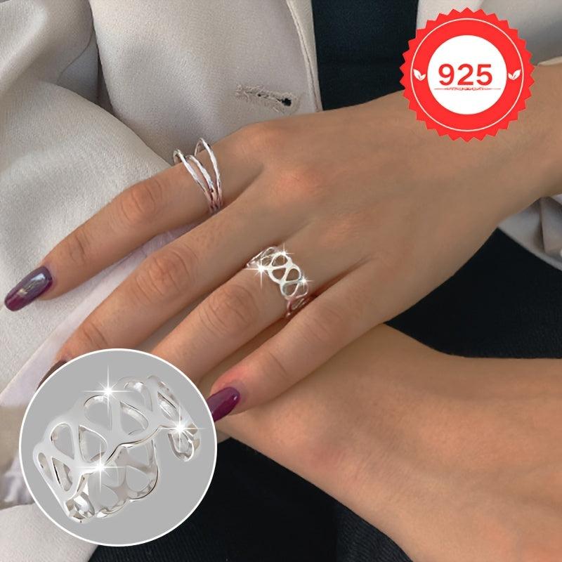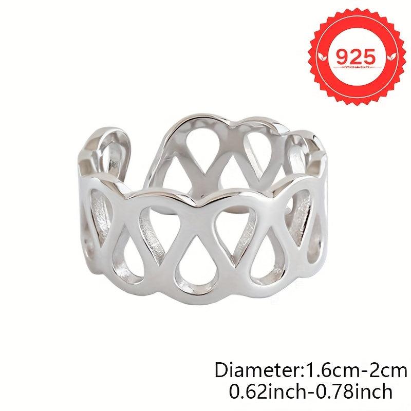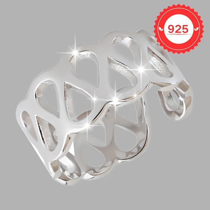 This 925 silver open ring features a wide face with a geometric lattice design. It is adjustable, making it perfect for daily wear, weddings, beaches, and holidays as a festive accessory.