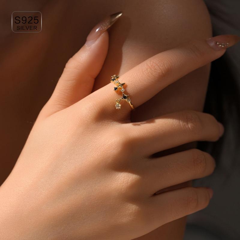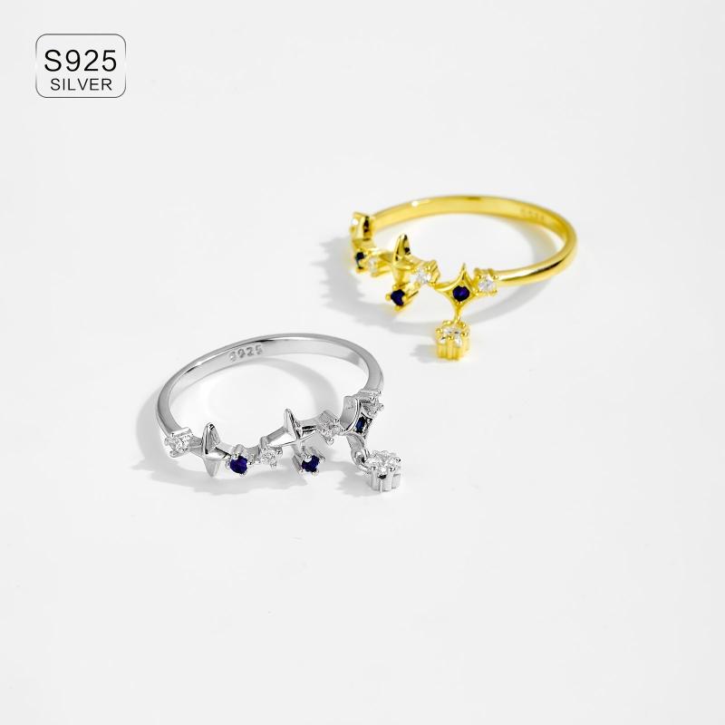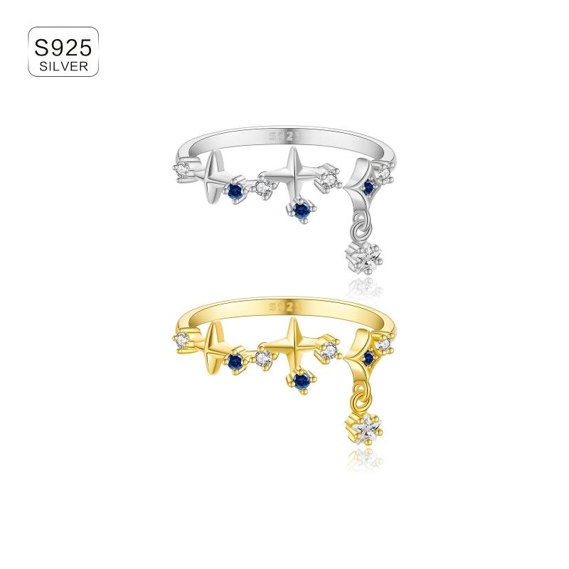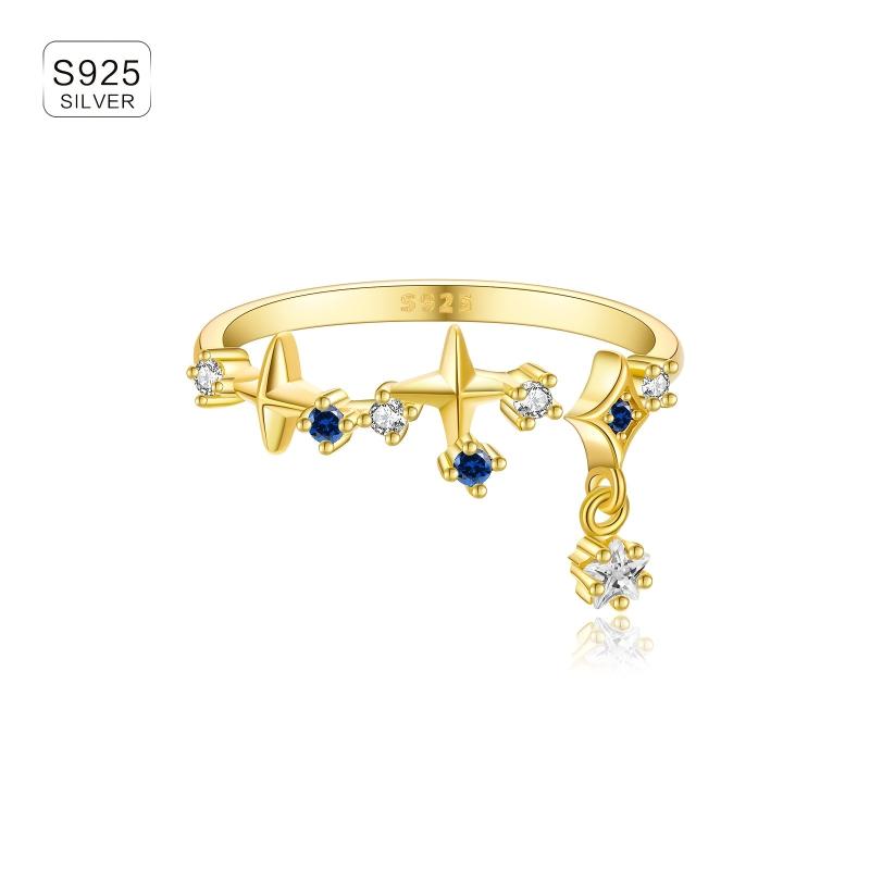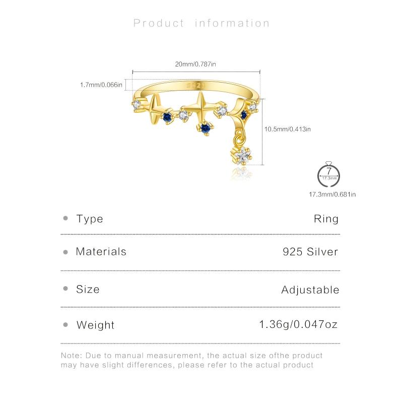 This stunning ring is made of 925 sterling silver with 18k golden plating. It features glittering synthetic zirconia accents that add a touch of elegance. The ring is adjustable in size and has a weight of 1.36g, making it a perfect gift for birthdays or anniversaries.