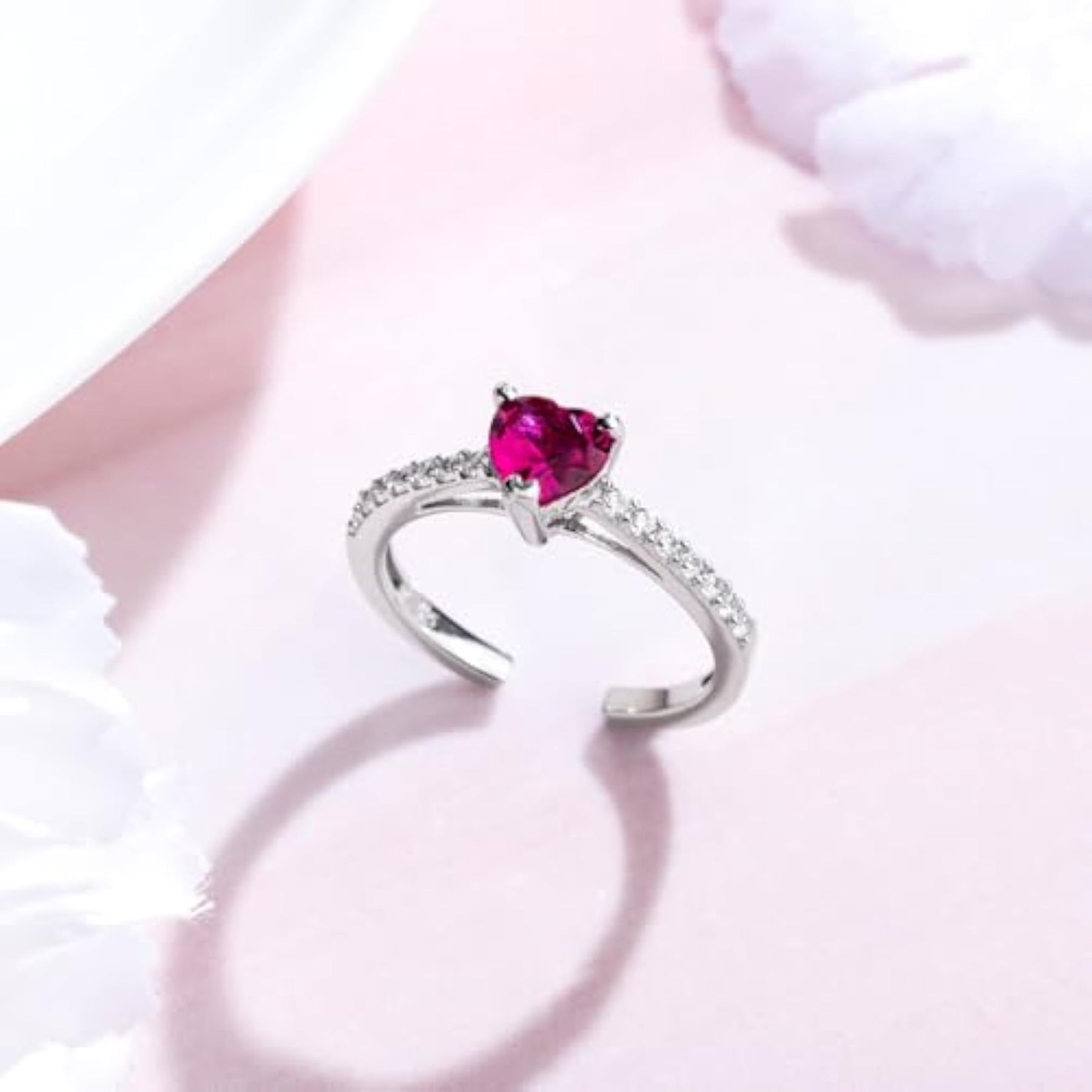 Add a touch of elegance with this stunning heart-shaped ring featuring a pink cubic zirconia stone. Made with 925 sterling silver and rose plating, this ring is perfect for any occasion.