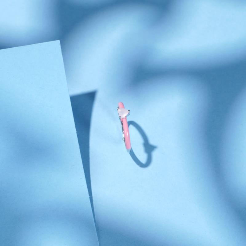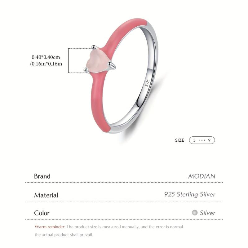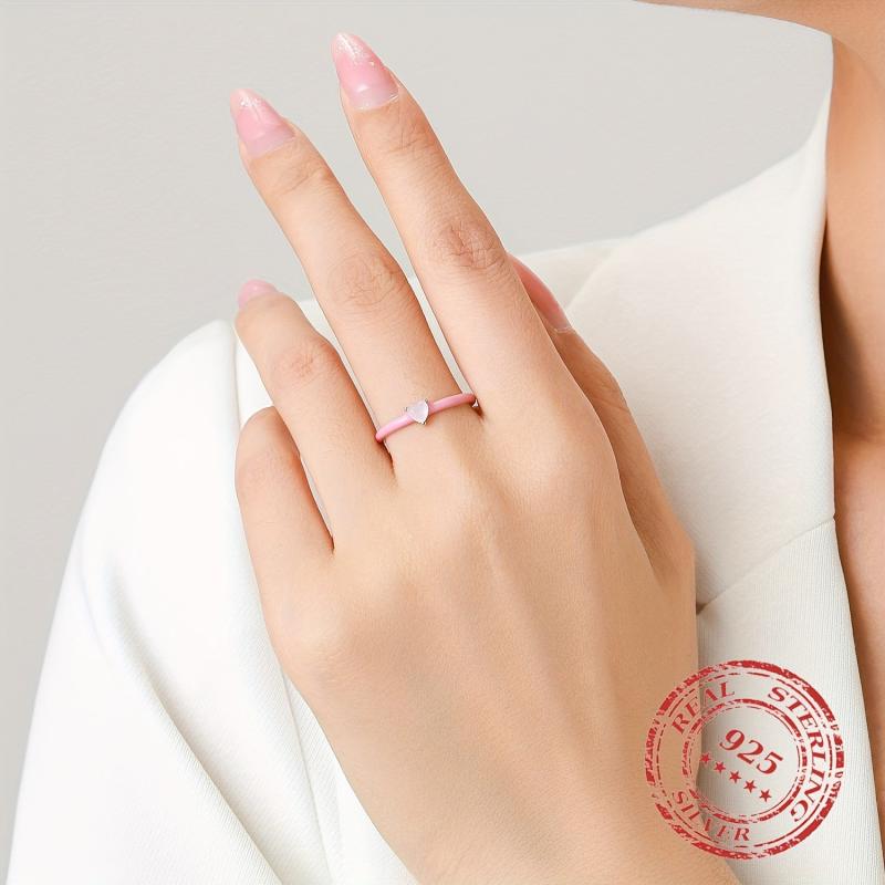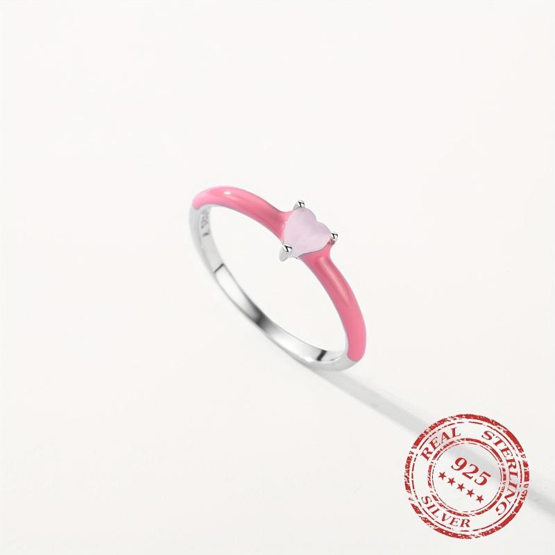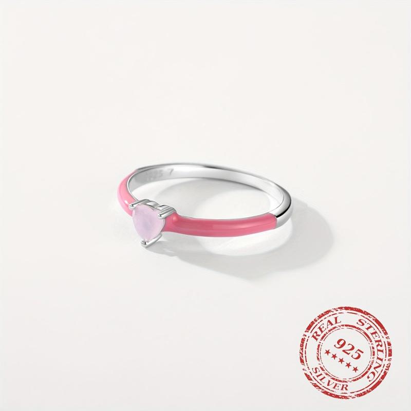 This 925 Sterling Silver ring features a pink enamel heart design with sparkling CZ stones. Perfect for parties or as a gift for a special woman.