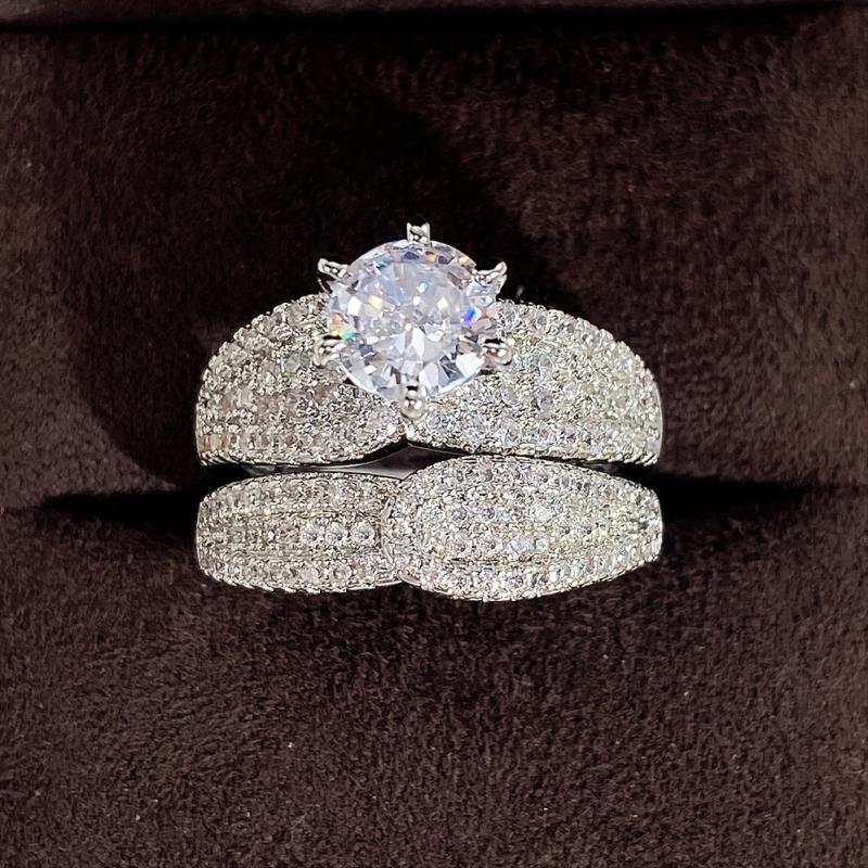 Elegant 925 silver plated ring set with zircon stones, perfect for weddings, engagements, and proposals. Ideal gift for women.