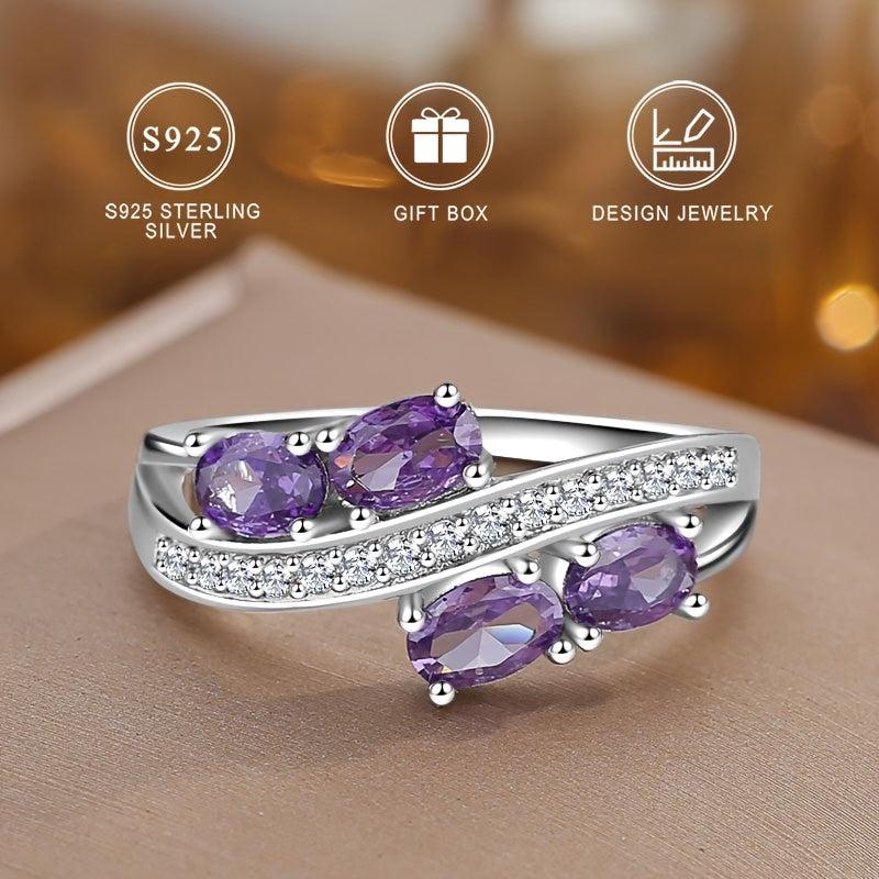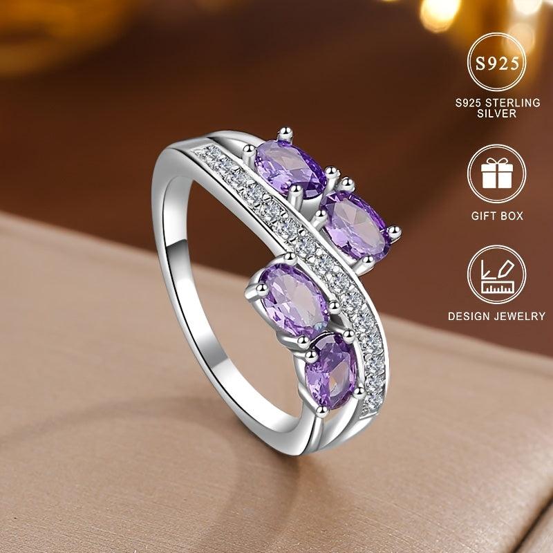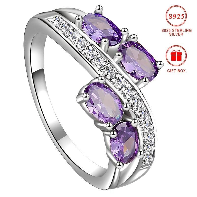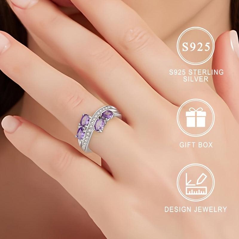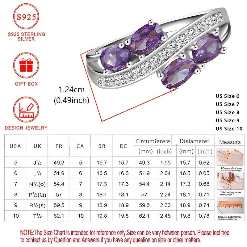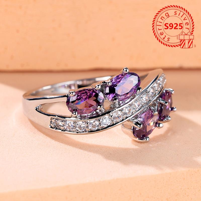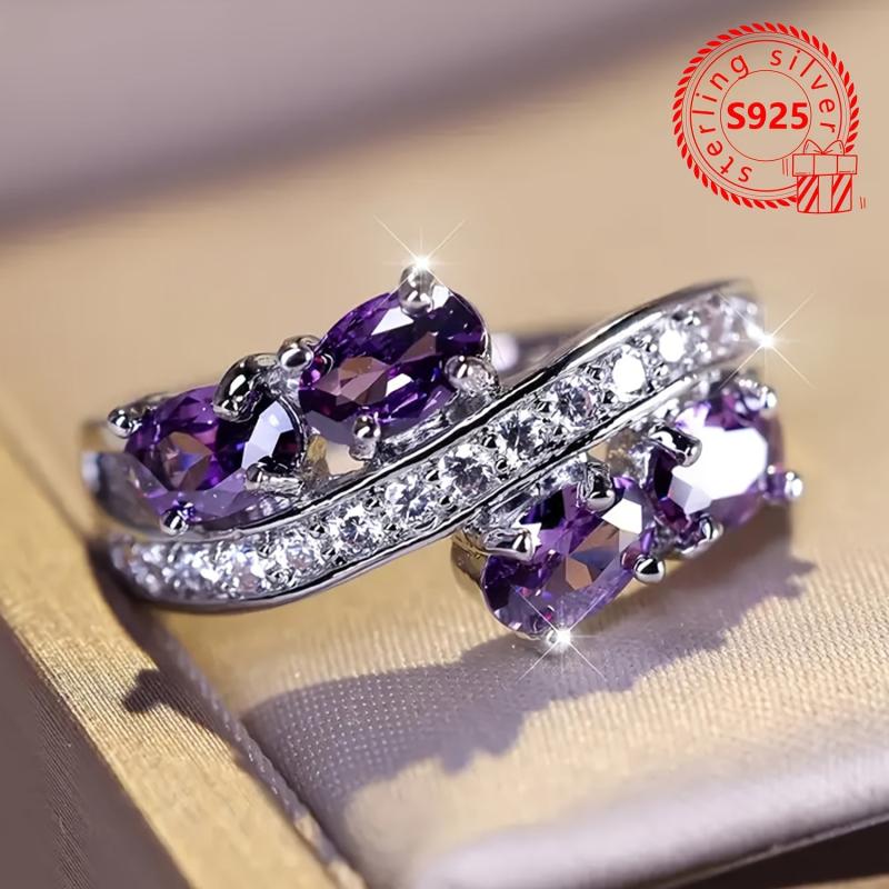 This exquisite 925 silver ring features sparkling purple cubic zirconia stones, making it the perfect gift for yourself or a loved one on Valentine's Day or an anniversary. The elegant design adds a touch of glamour to any outfit.