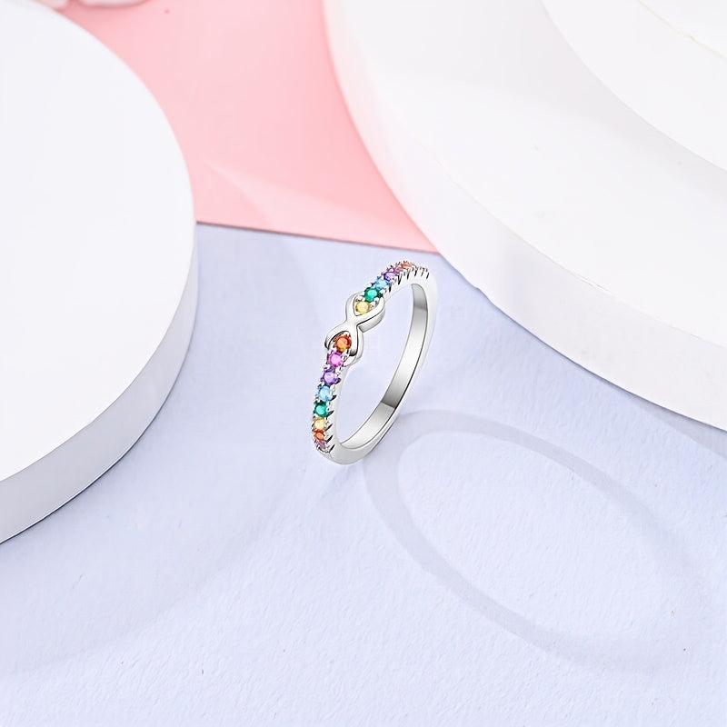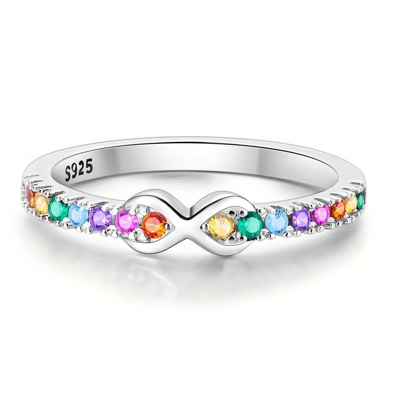 Elegant 925 silver ring with colorful zirconia inlay. Perfect for wedding, parties, or as a gift. Hypoallergenic for sensitive skin.