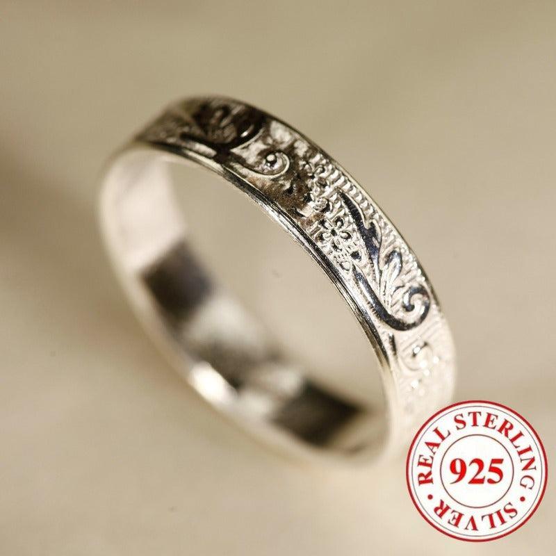 Elegant and stylish ring crafted from 925 pure silver with a retro carved pattern. Perfect for daily wear or special occasions like parties and banquets. Makes a great jewelry gift.