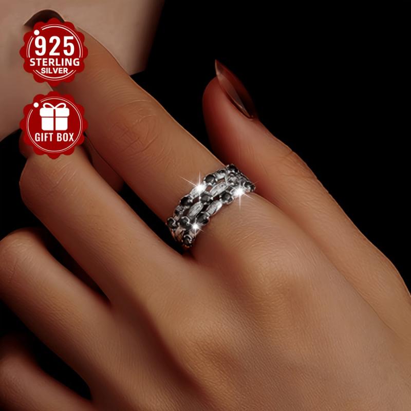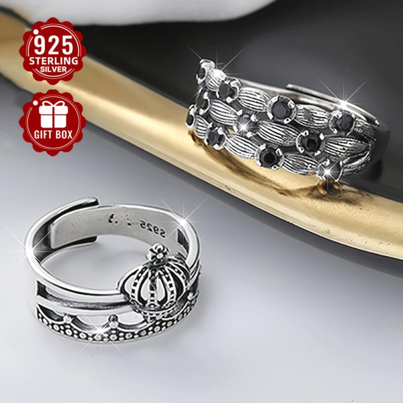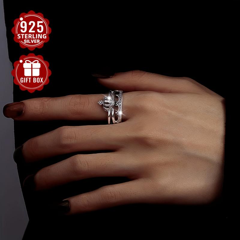 Elegant 925 silver ring set features a retro crown design with synthetic Zirconia stones, perfect for a hip hop style look.