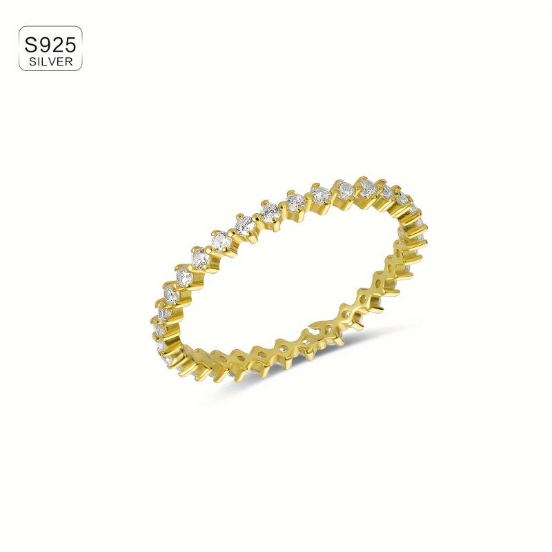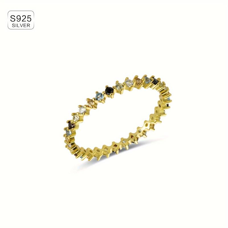 Elevate your look with this stunning 925 sterling silver ring featuring synthetic cubic zirconia stones. The 18K golden plated design adds a touch of luxury, perfect for daily wear or holiday parties.